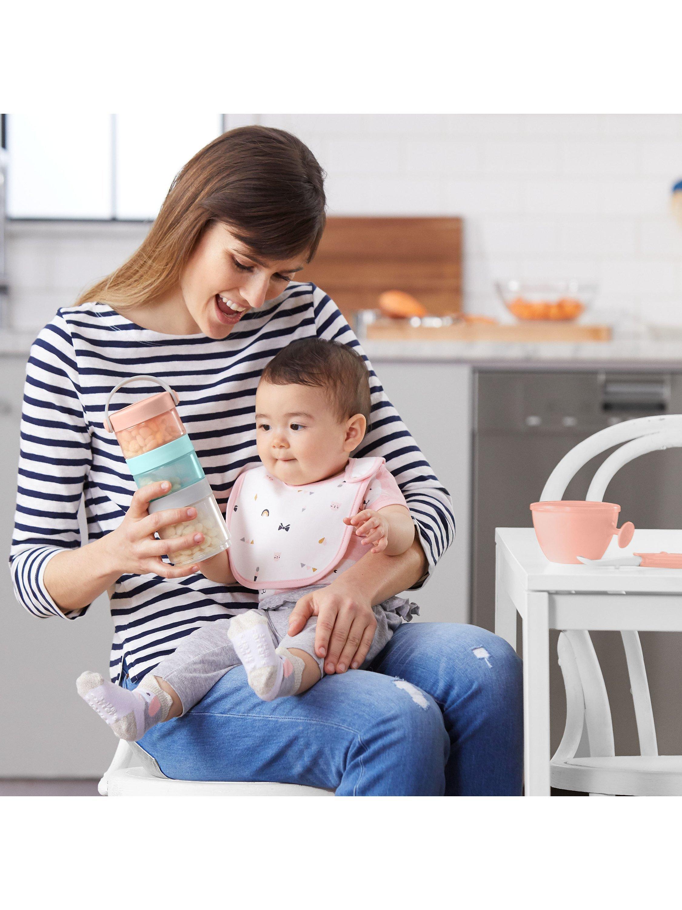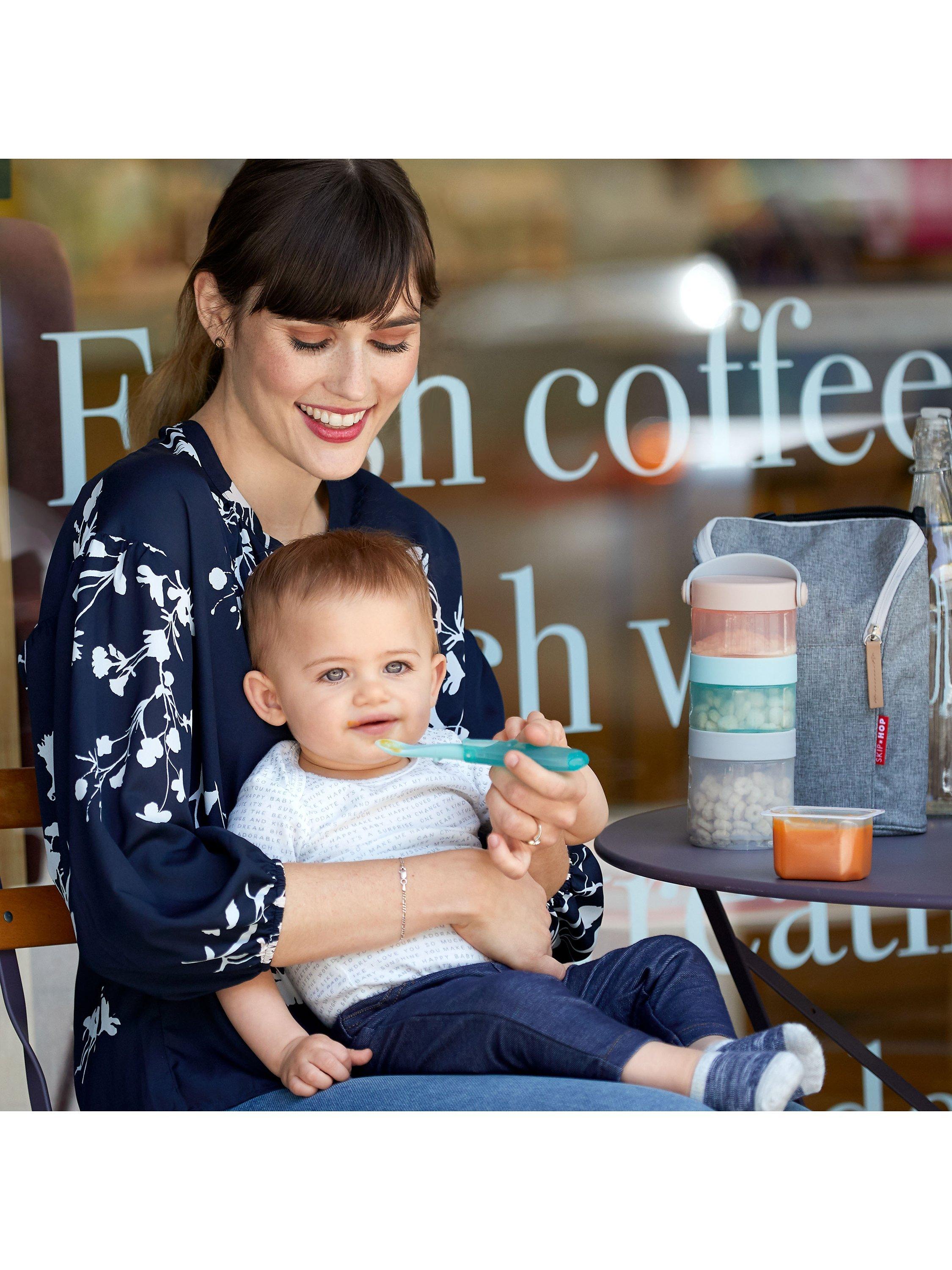 The perfect pack & go companion with interchangeable, twist-and-lock lids, this baby food storage container set from Skip Hop makes feeding time a little easier.