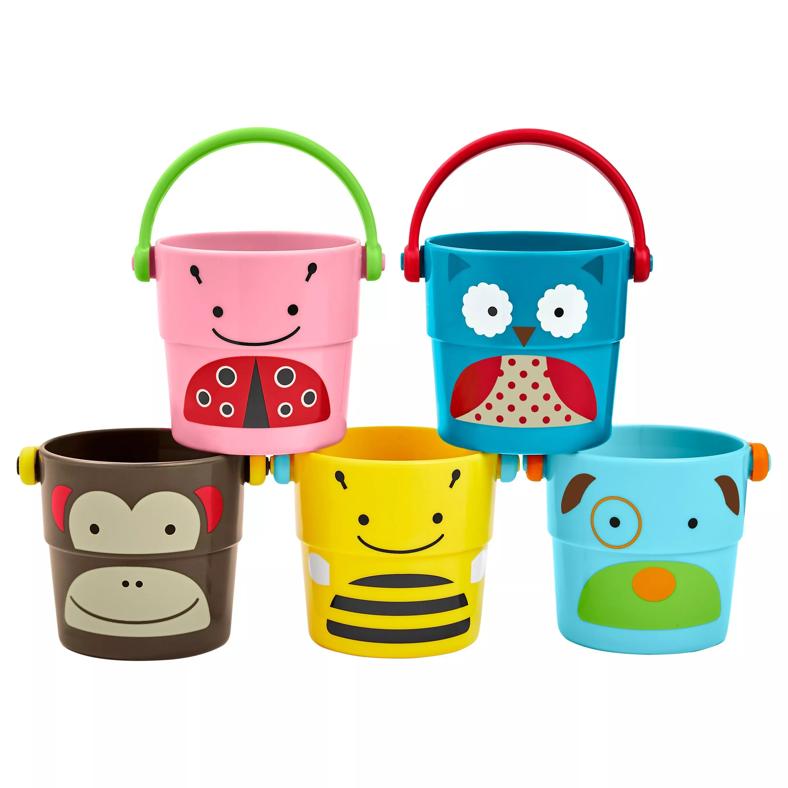 Our friendly-faced nesting buckets feature three different sprinkle effects for bath time fun. Perfectly sized for little hands, they provide endless bath time play while helping to build motor skills.