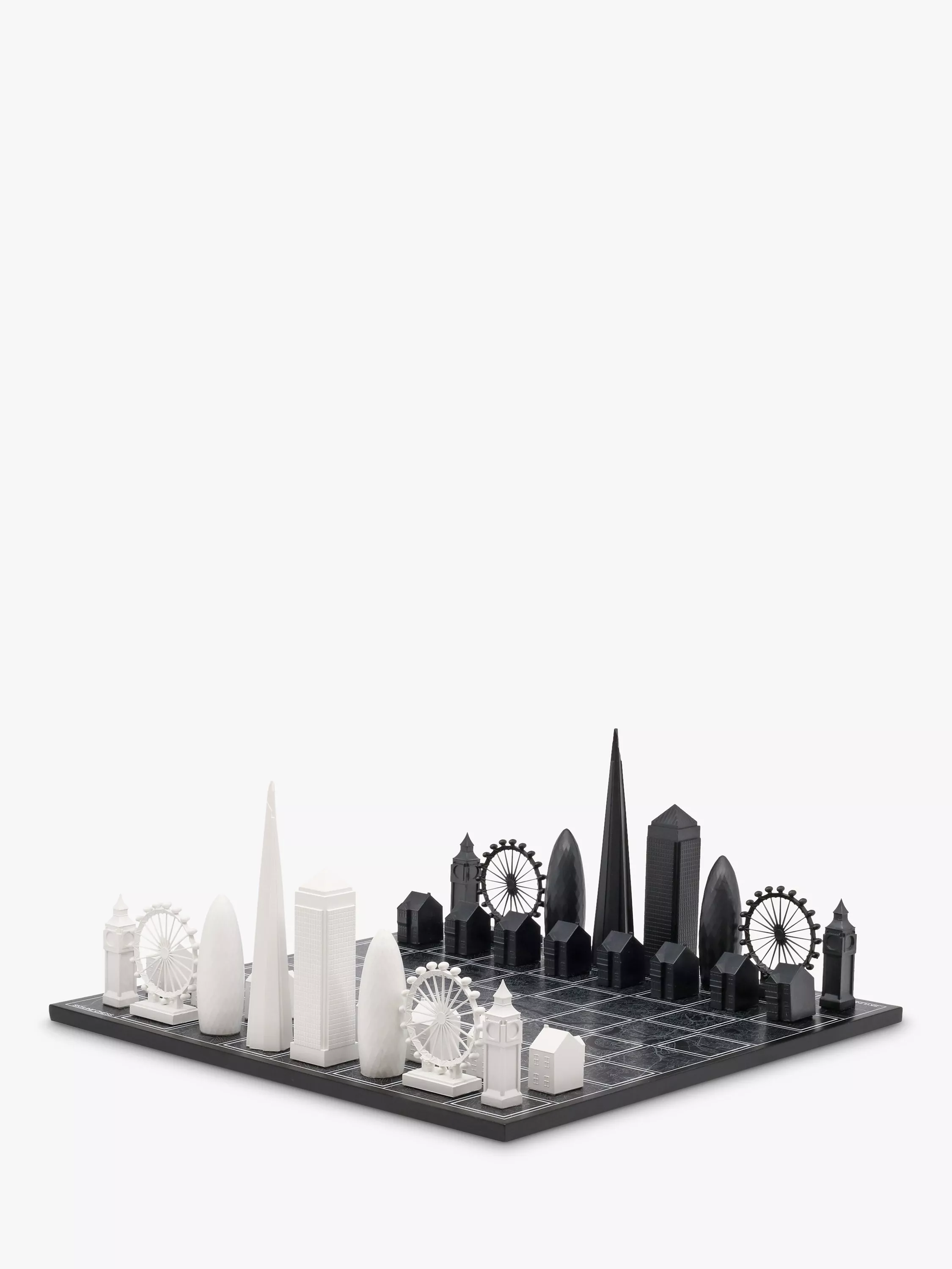 A distinguished line up of London's most-notable architecture; including Big Ben, London Eye, St Mary Axe, The Shard and Canary Wharf. This 32-piece chess set cast in injection moulded acrylic is double weighted with a soft felt base under each piece for comfortable gameplay.