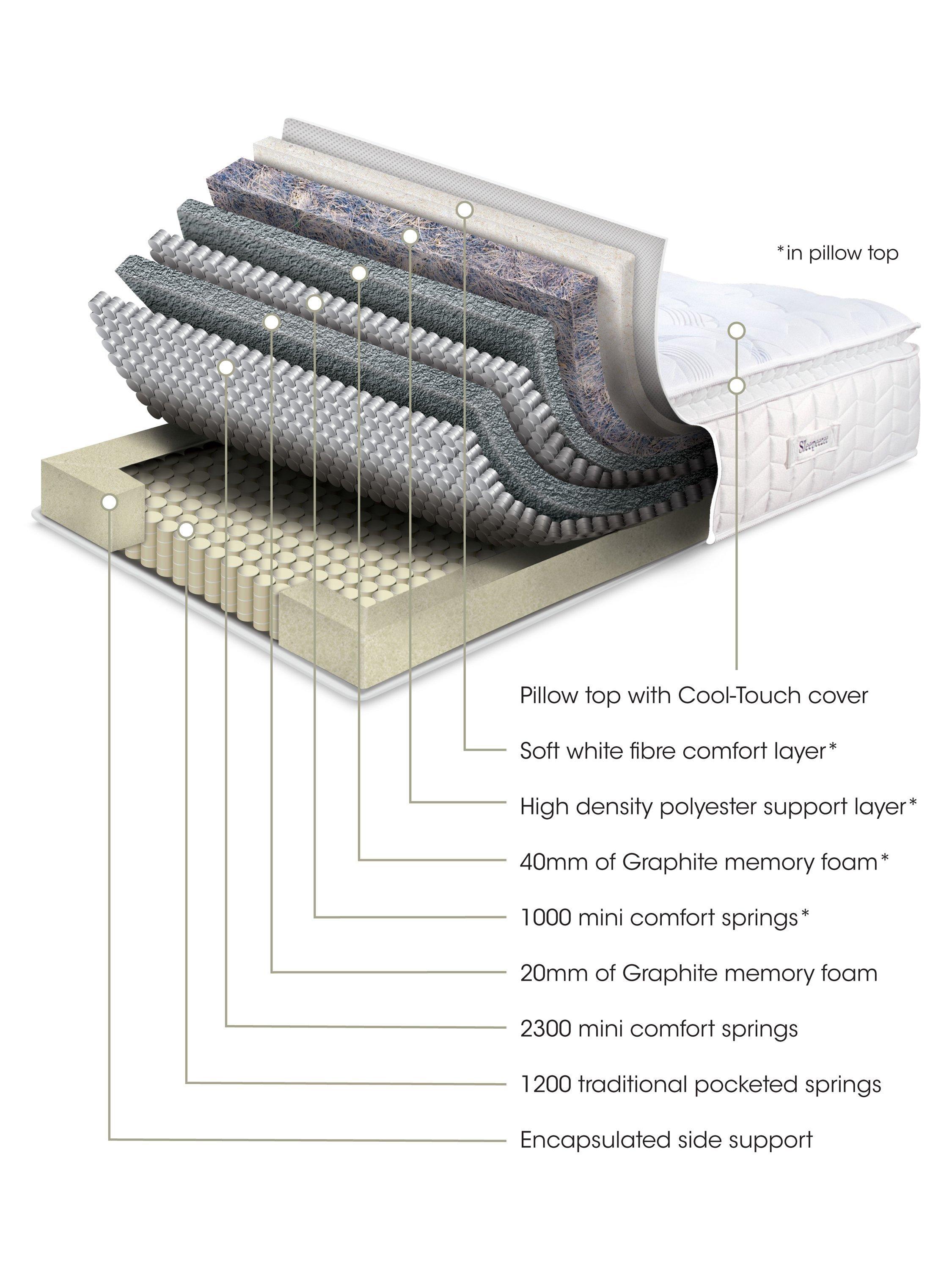 - High-density polyester comfort layers, Graphite memory foam layers, 3500 mini pocket springs 1200 individually pocketed springs