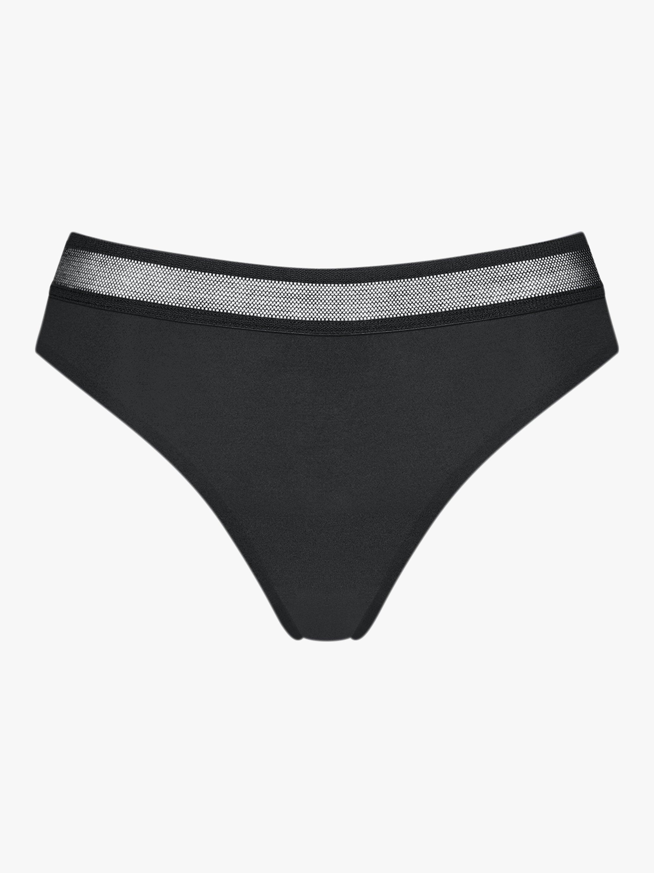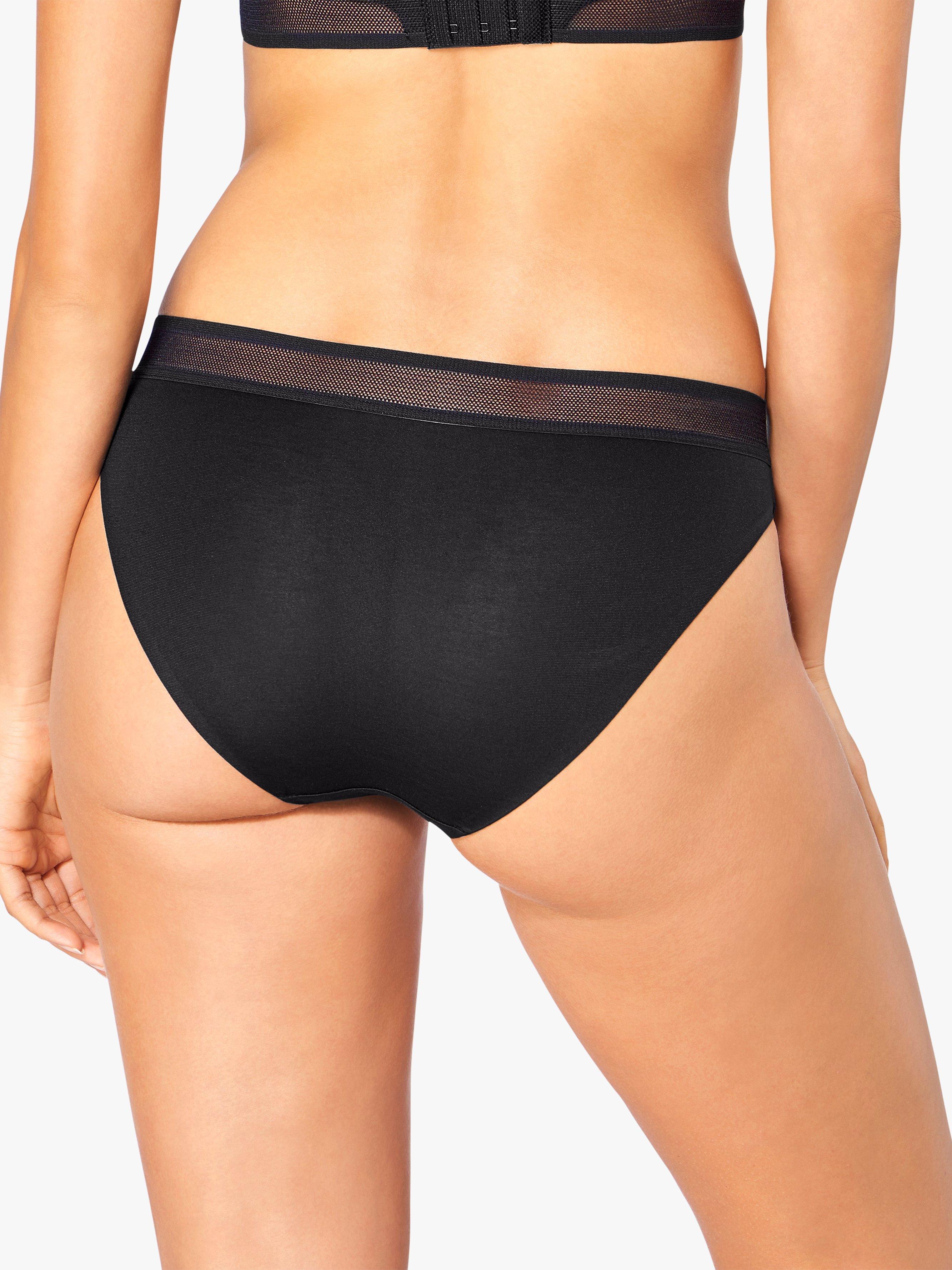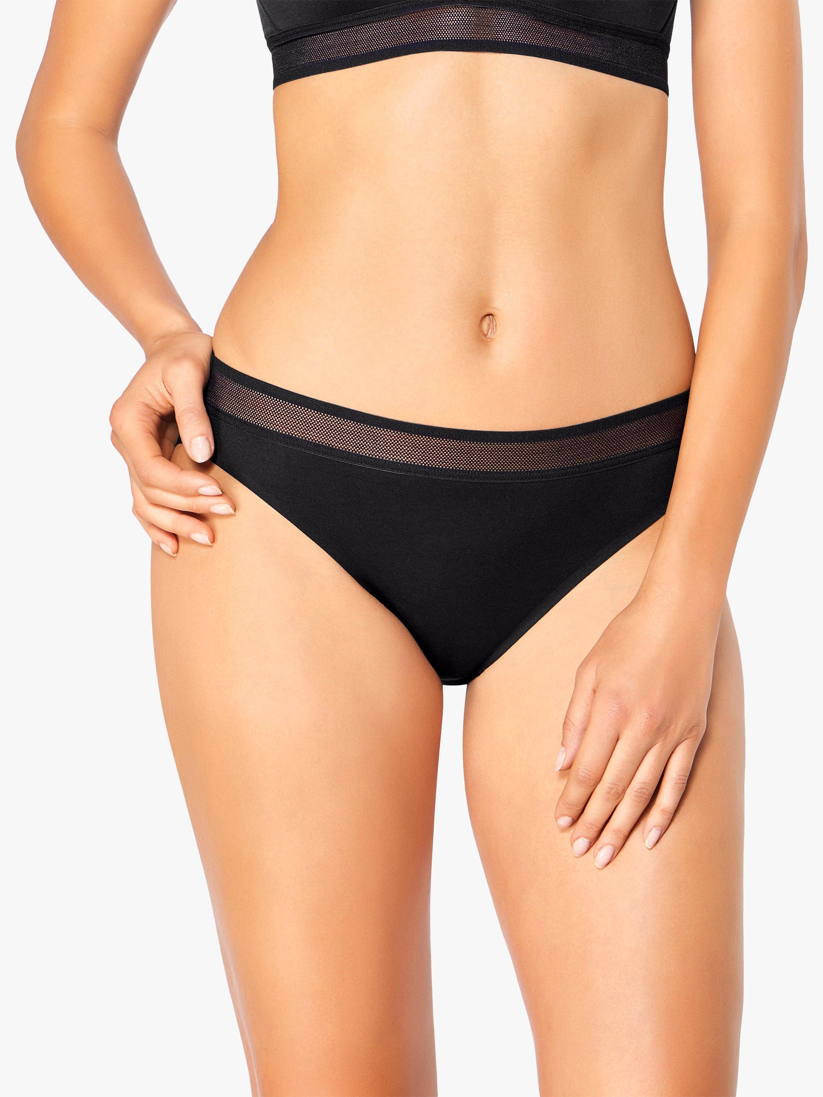 Stretchy and soft, they fit over the hips with plenty of coverage and feature a mesh panel at the waist.