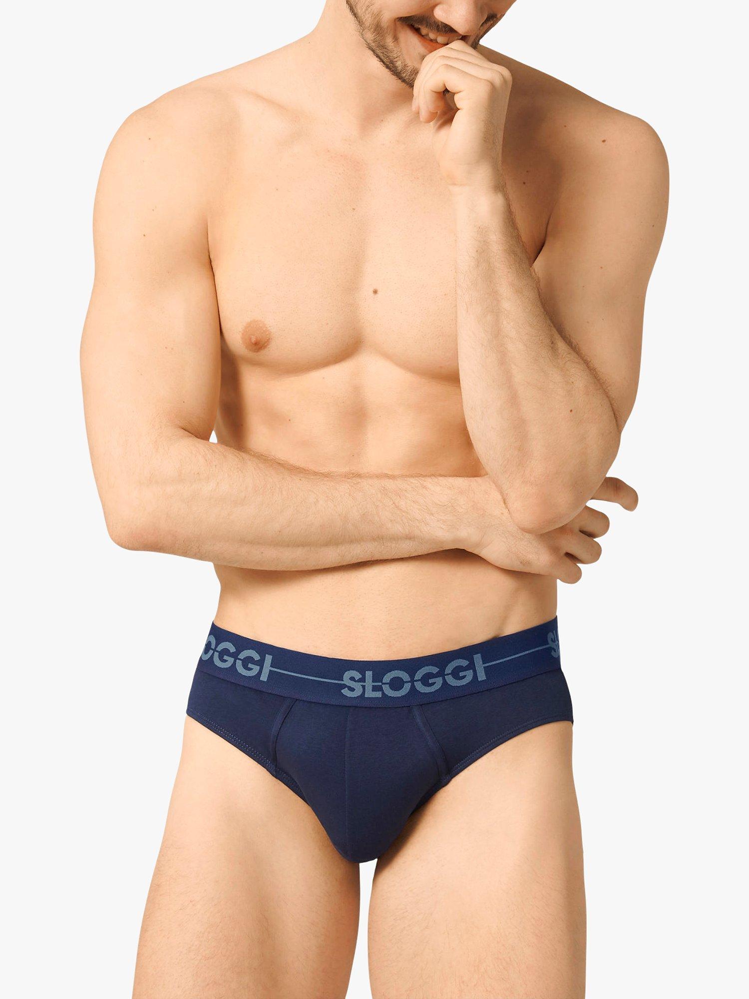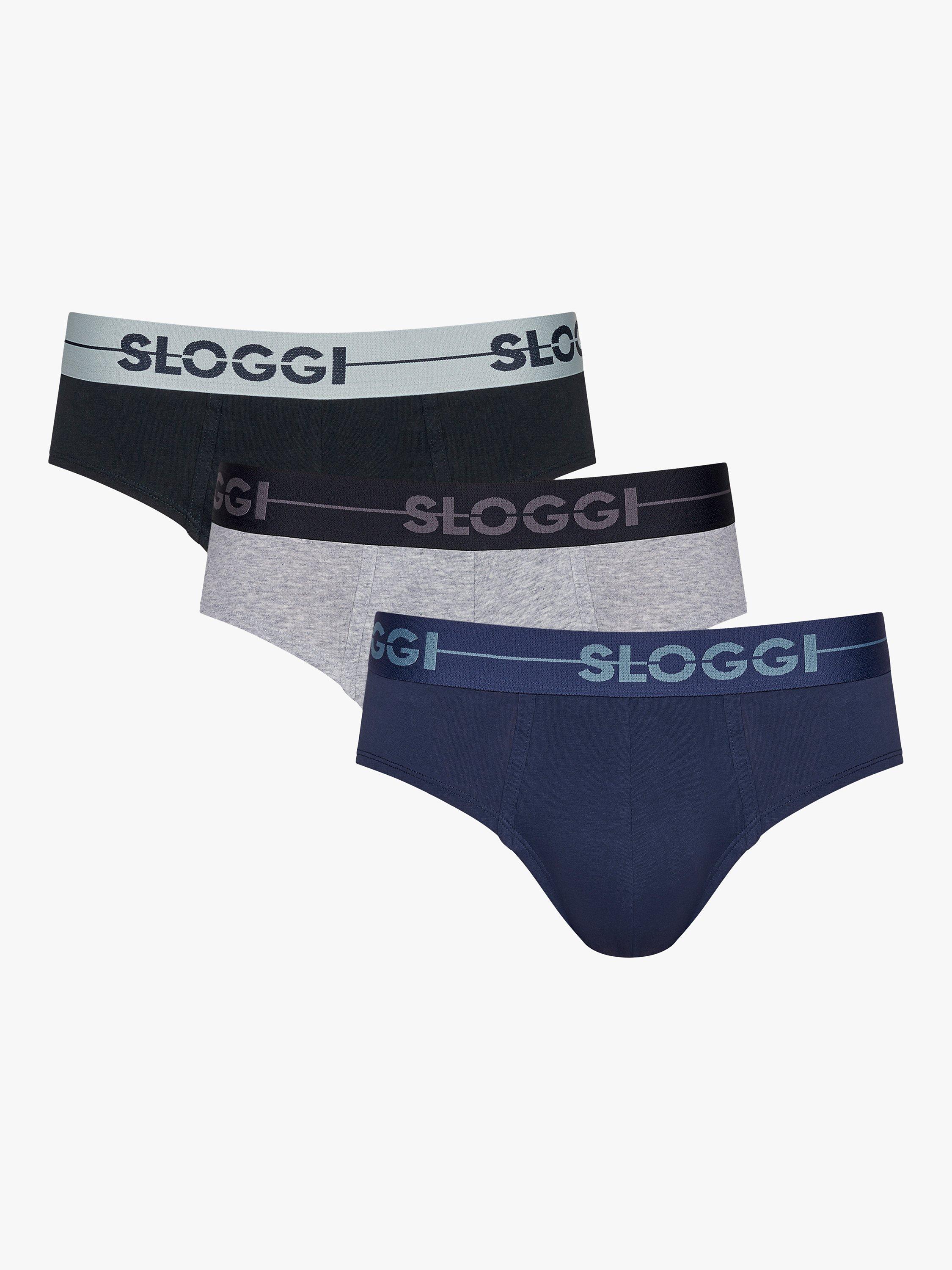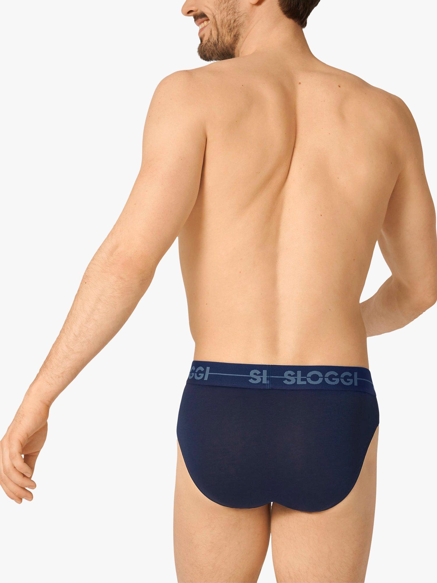 sloggiGO Basic Natural Cotton Stretch Briefs, Pack of 3, Blue - Dark Combi, S