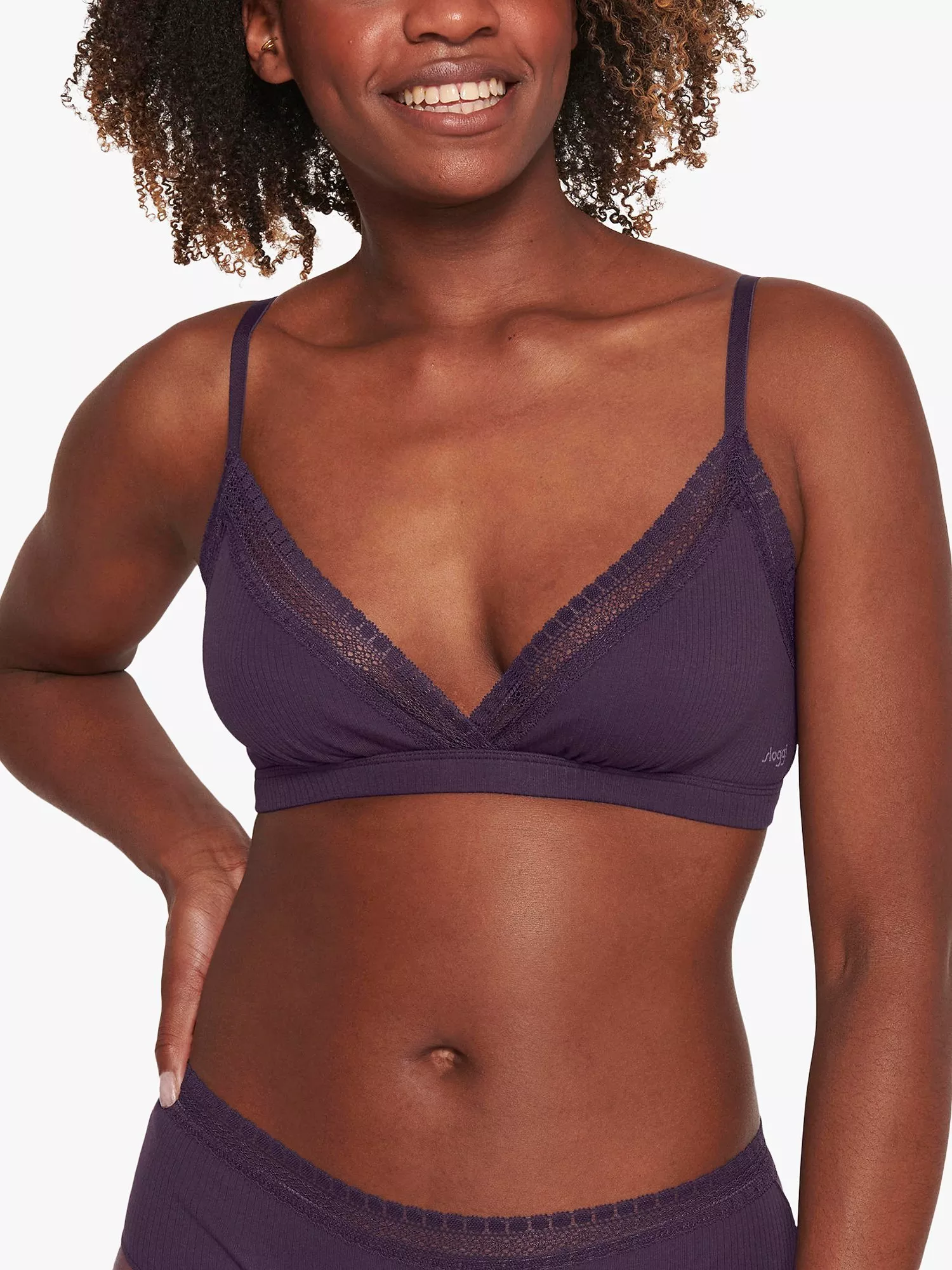Embrace everyday comfort with sloggi's GO ribbed everyday bralette, made from premium ribbed organic cotton with a stretchy lace trim. Wire-free and non-padded, this easy-to-wear style features adjustable straps and a wide underbust band that provides light support. Wear it with matching briefs from the collection.