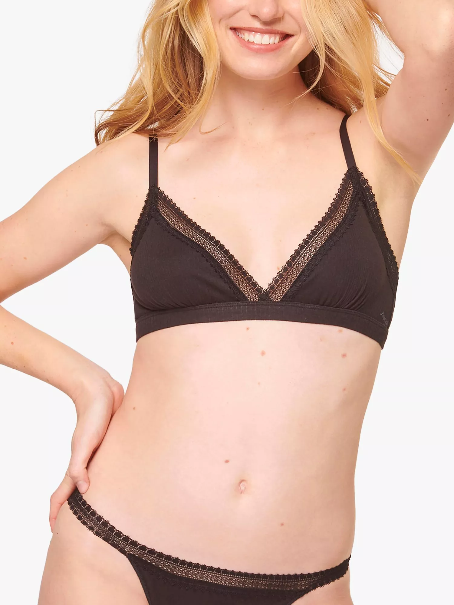 Embrace everyday comfort with this GO Ribbed everyday bralette, made from premium ribbed organic cotton with a stretchy lace trim. Wire-free and non-padded, this easy-to-wear style features adjustable straps and a wide underbust band that provides light support. Wear it with matching briefs from the collection.