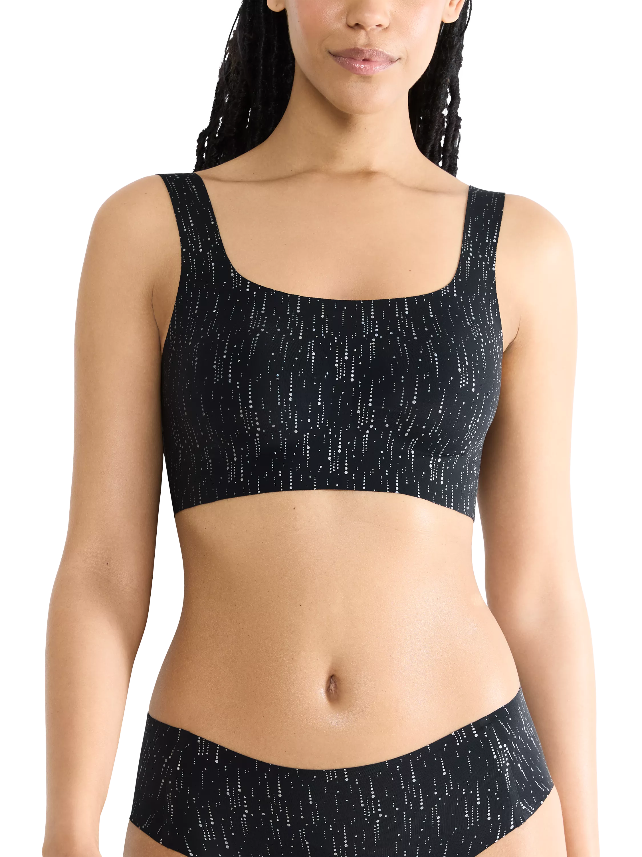 Seam-free, invisible comfort has a fresh new look with this ZERO Feel Top, cut from super-fine microfibre with removable cookies for an improved silhouette. Innovative dot bonding technology on the straps and underbust provides extra support while ensuring complete invisibility under clothes.