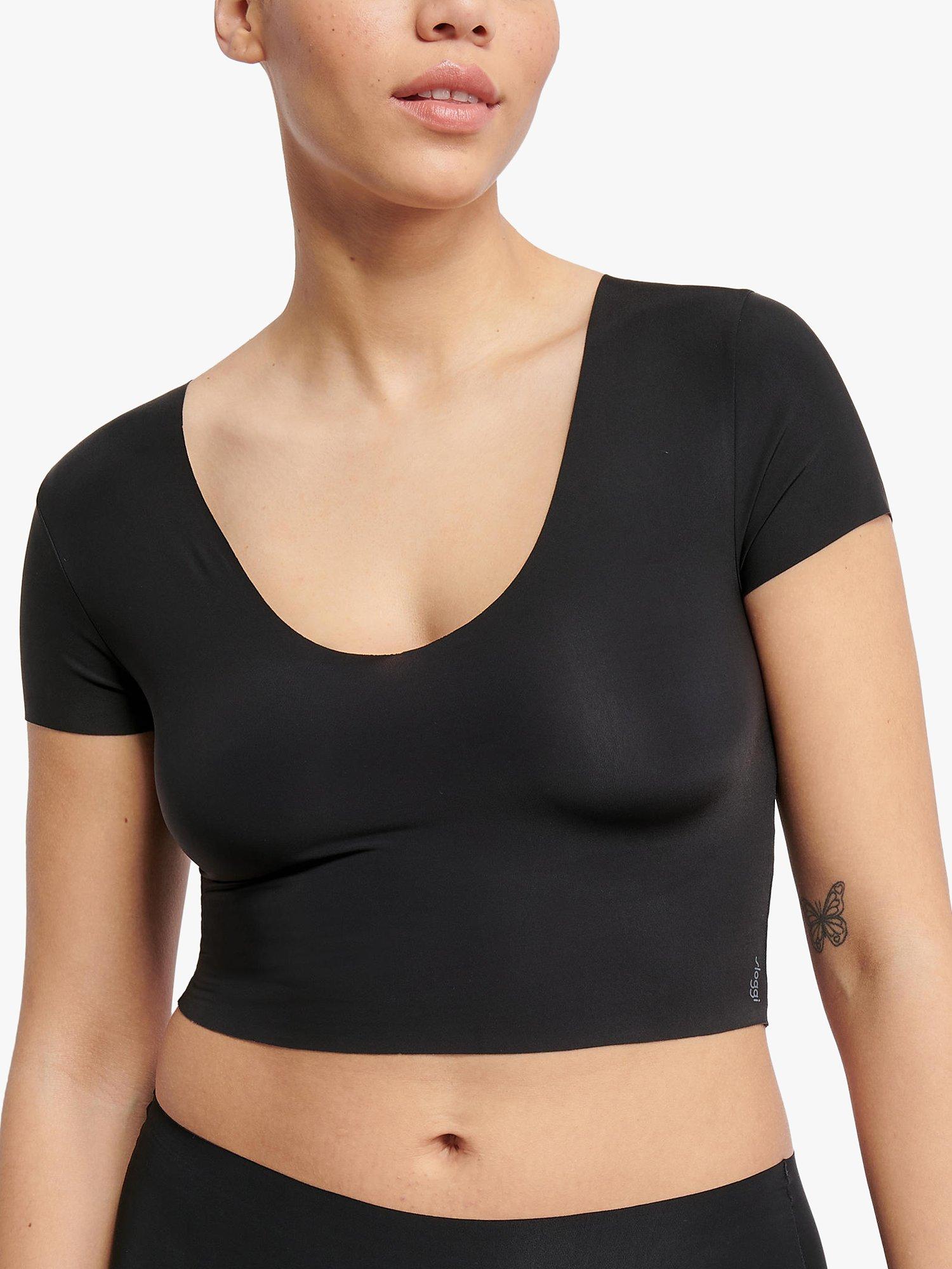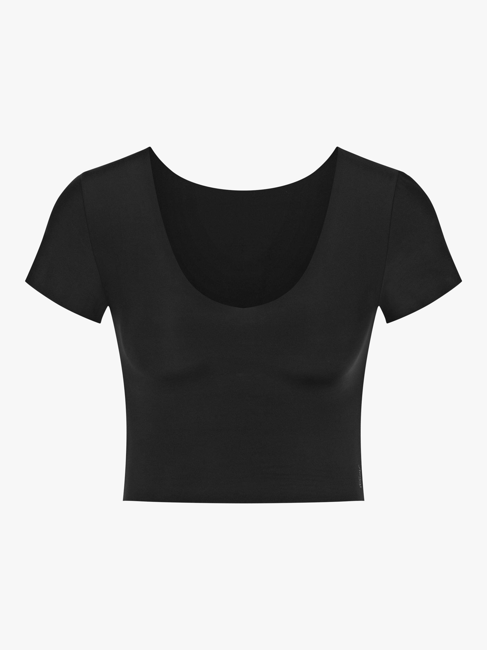 Get that unfeelable feeling with this Zero Feel Crop Top, cut from ultra-light, stretchy recycled microfibre with short sleeves. Innovative dot bonding technology means no seams and no red marks. A reversible neckline offers two looks in one.