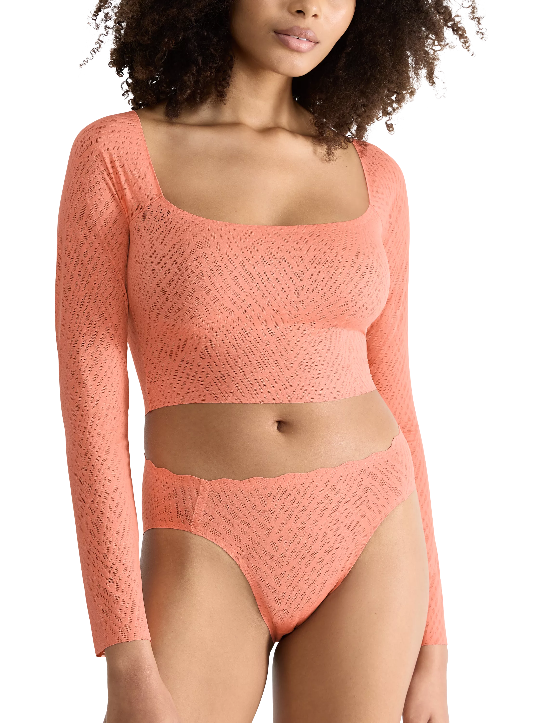 Romanticise your look with this ZERO Feel Bliss Long-Sleeve Top, offering seamless, invisible comfort in delicate, 360° stretch lace. Designed with a trendy square neckline and cropped silhouette, it can be worn solo or layered over a contrasting crop top from the collection.