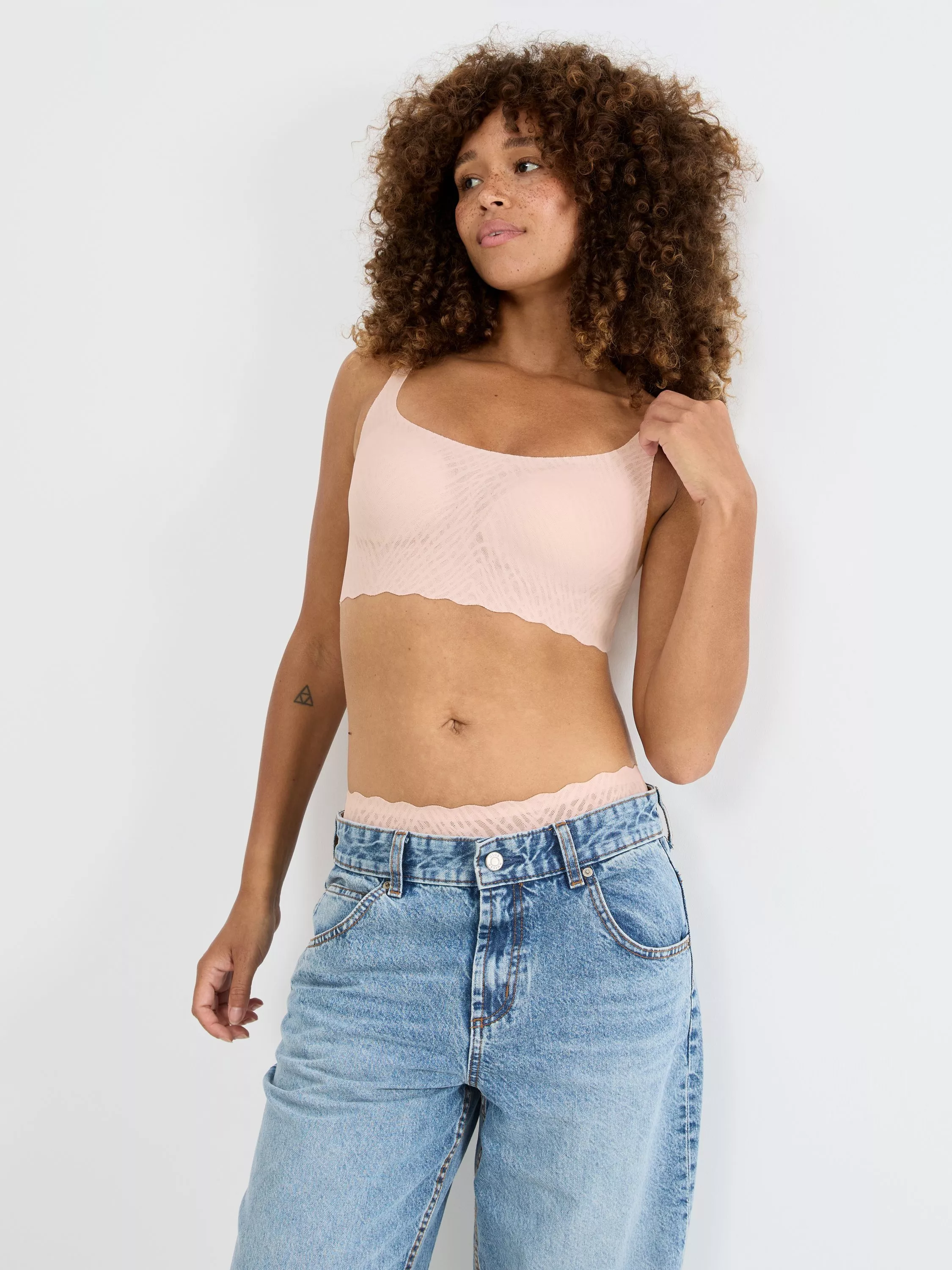 Make every day sheer romance with this ZERO Feel Bliss Top, offering the seamless, invisible comfort of ZERO Feel in delicate, 360° stretch lace. Removable cookies enhance your silhouette while a free-cut, wavy hem ensures a comfy, curl-free fit.