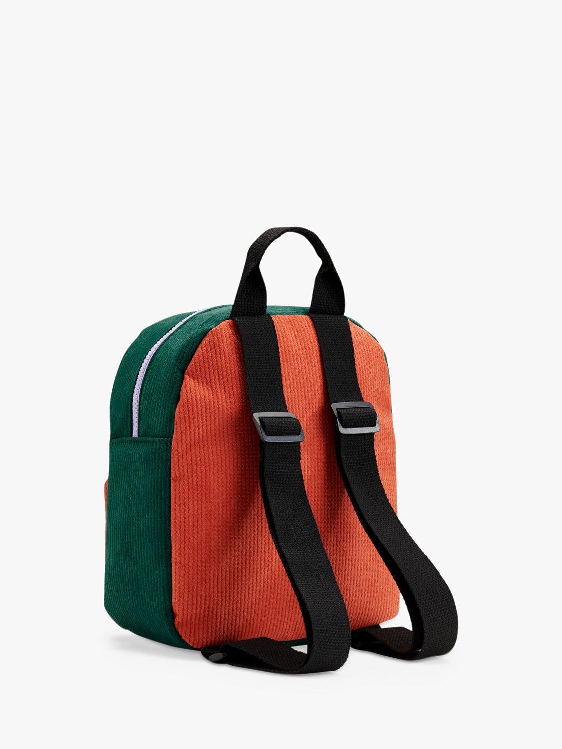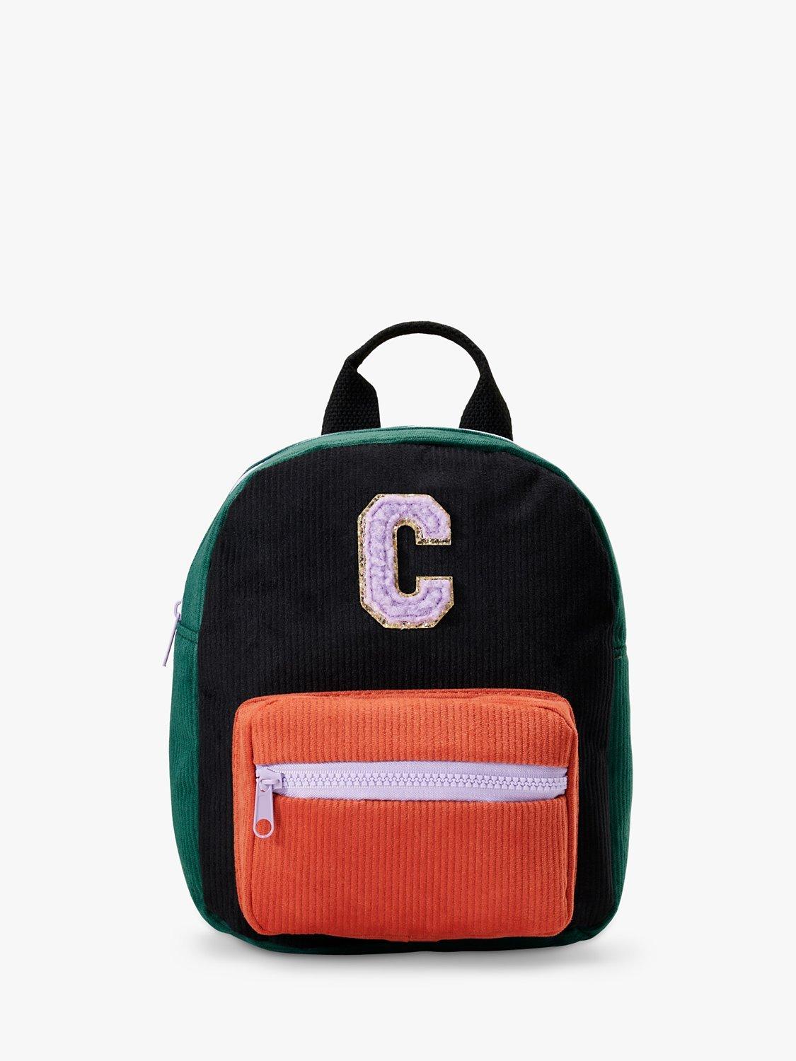 This cord backpack showcases a patch initial with a zip up main compartment and front pocket. Finished with a sturdy grab handle and two adjustable straps.