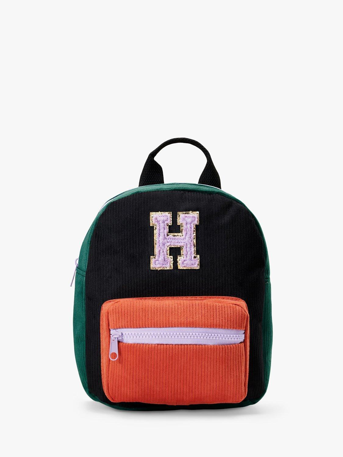 This cord backpack showcases a patch initial with a zip up main compartment and front pocket. Finished with a sturdy grab handle and two adjustable straps.