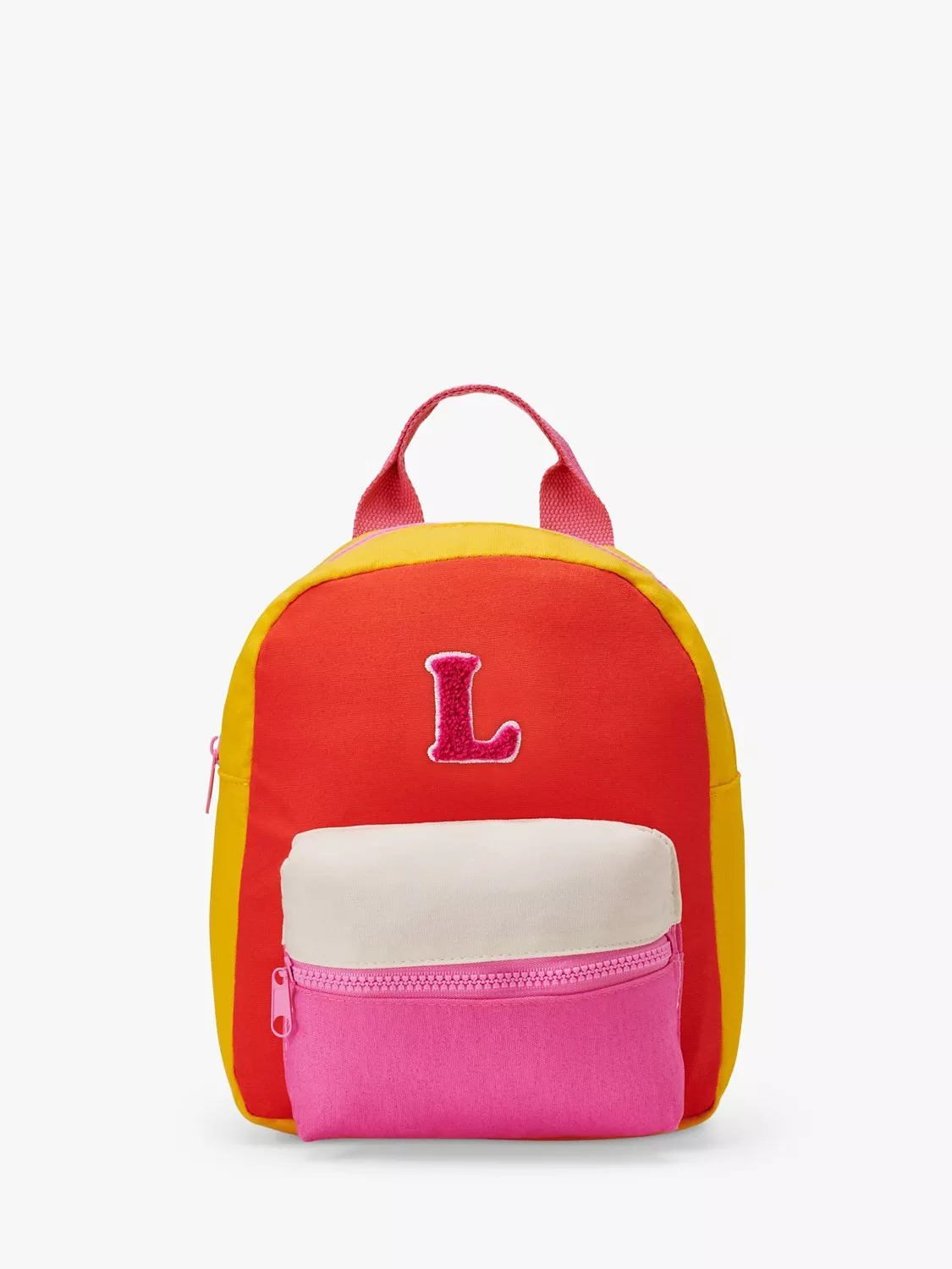 Ready for lessons, sleepovers or after-school clubs, this bright backpack is spacious enough to hold all their essentials. This personalised initial canvas backpack is made from recycled polyester in a bold colour block design. Fitted with adjustable web shoulder straps and a carry handle, its main compartment and front outer pocket seal with a child-friendly large zip closure.