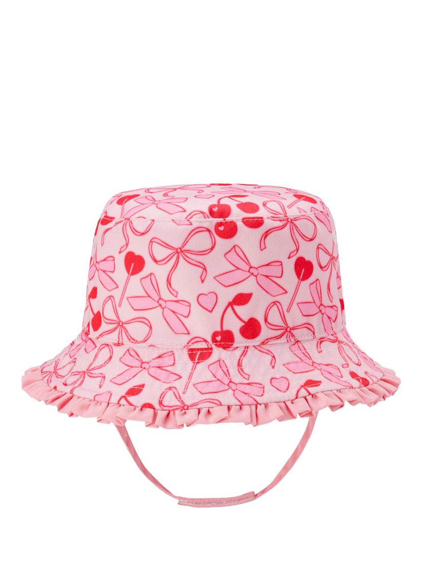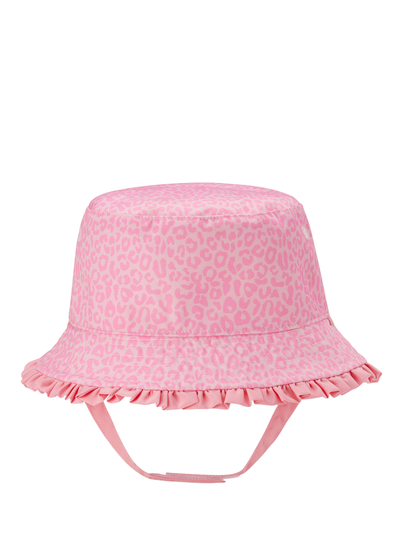 Reversible ruffle trim sun hat, with a rip-tape chin strap.
