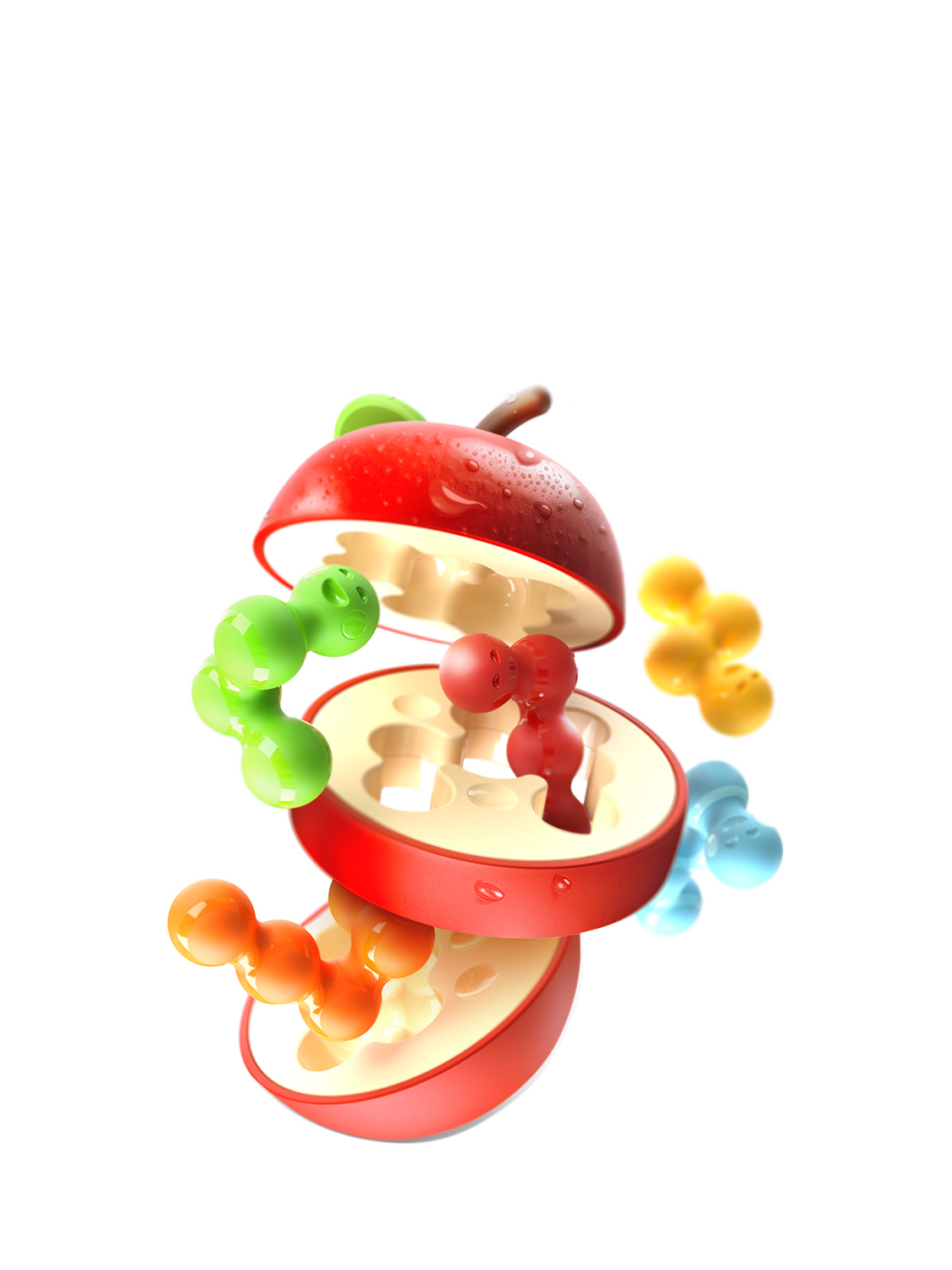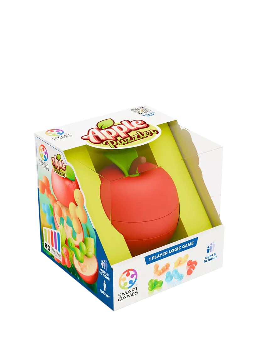 A puzzle a day keeps the doctor away! Fit all the worms inside the three-sliced apple by stacking the different layers on top of each other. Find the correct position of the worms and arrange the slices to close the apple and complete each of the 80 challenges!