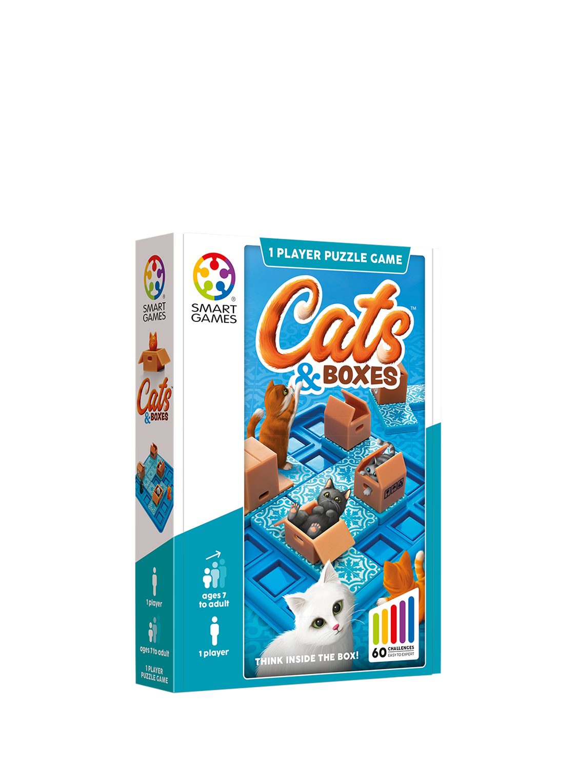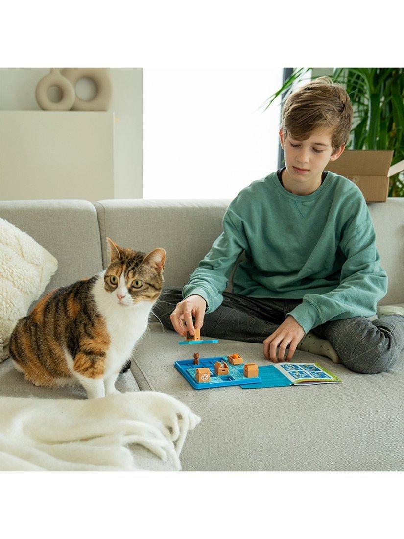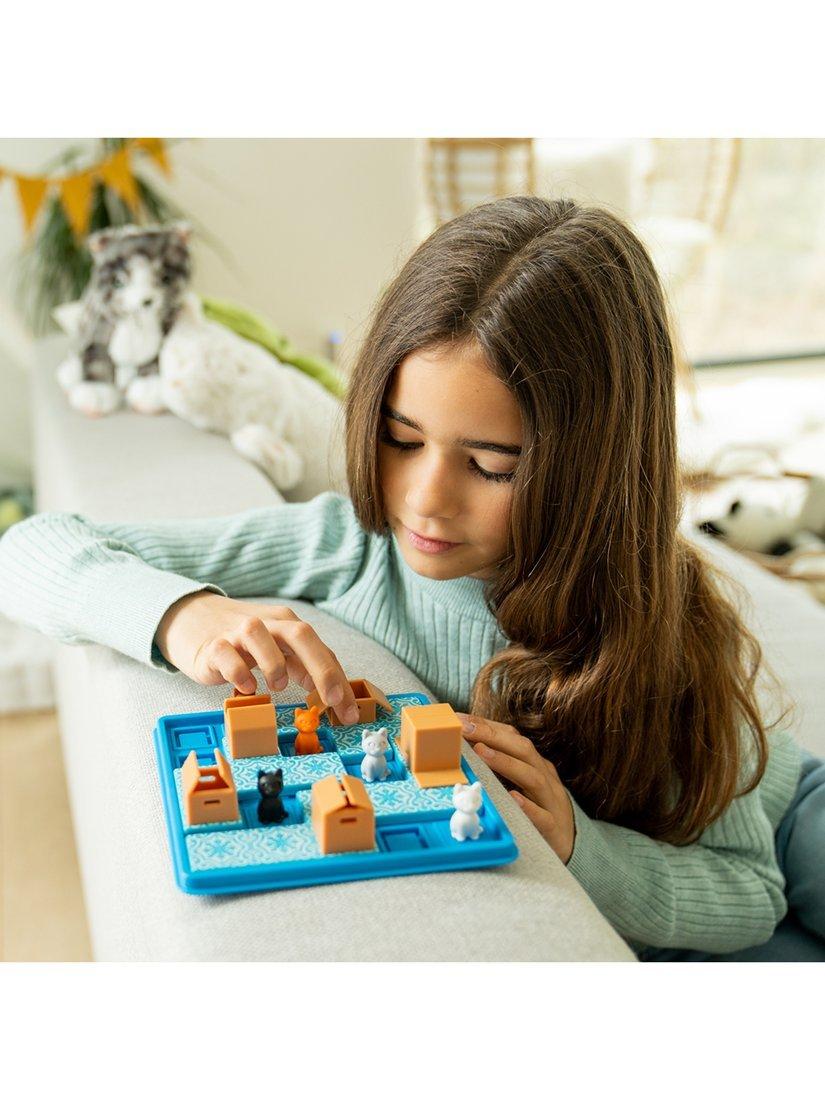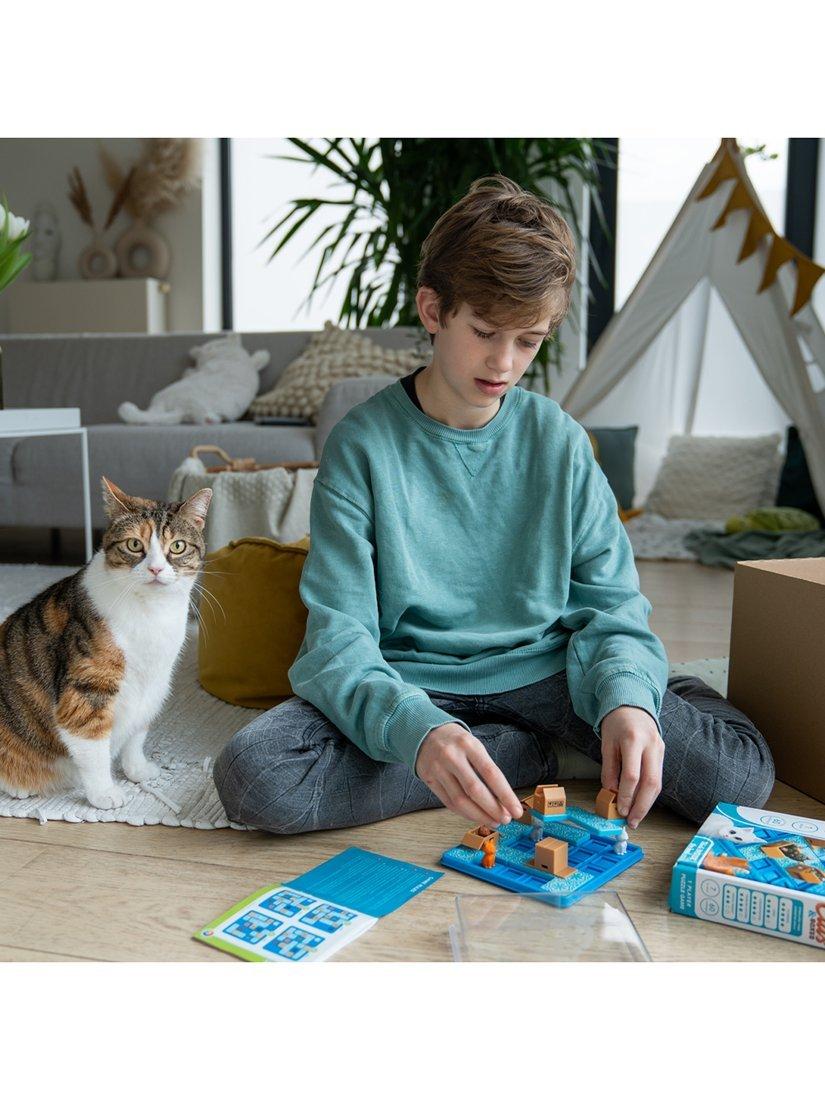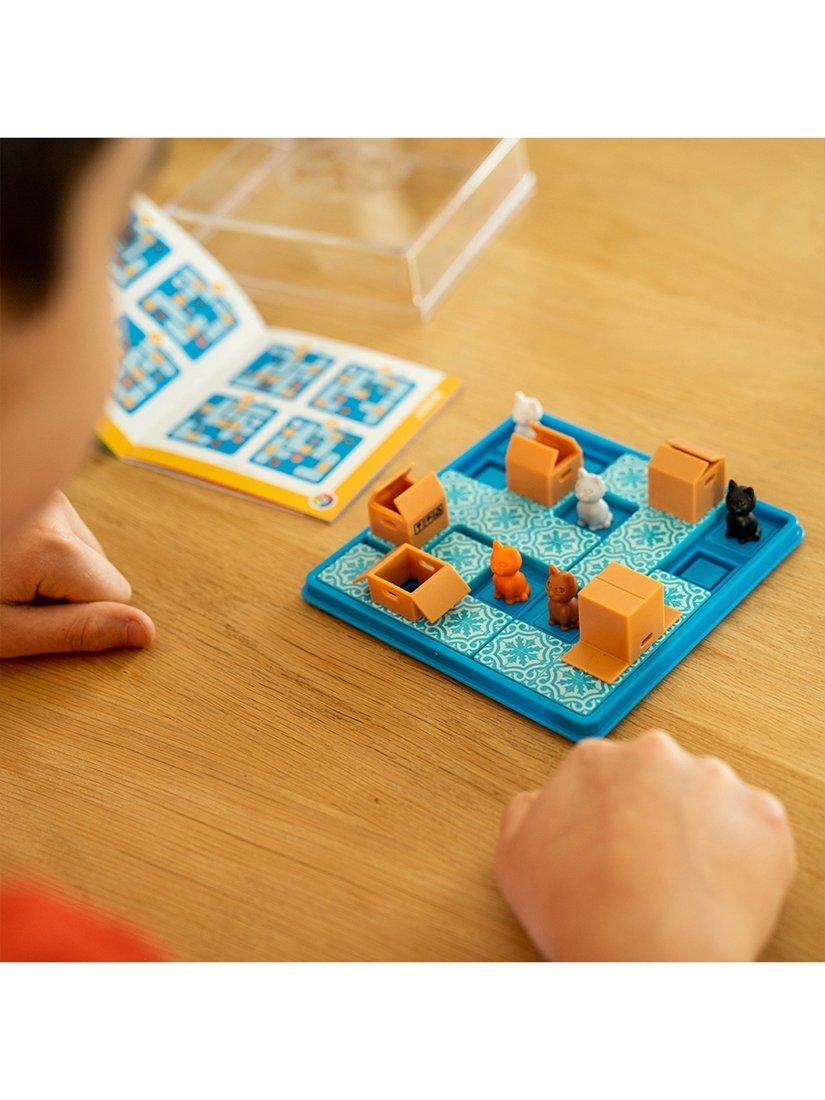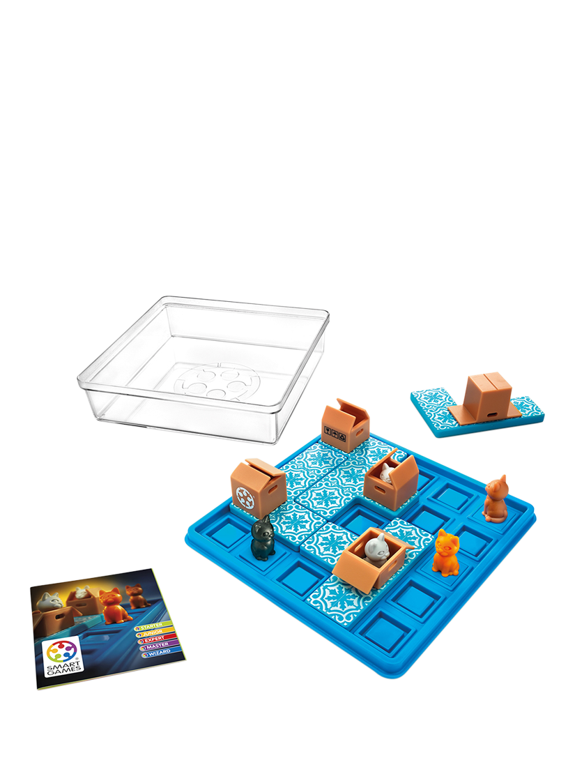 These cats love hiding in boxes! Move the puzzle pieces, one by one, until all of the cats are in a cardboard box. Can you help them find their favourite hiding spot? This sequential puzzle game for kids and adults comes with a portable gameboard and lid, making it purrrrrfect to take with you on the go!