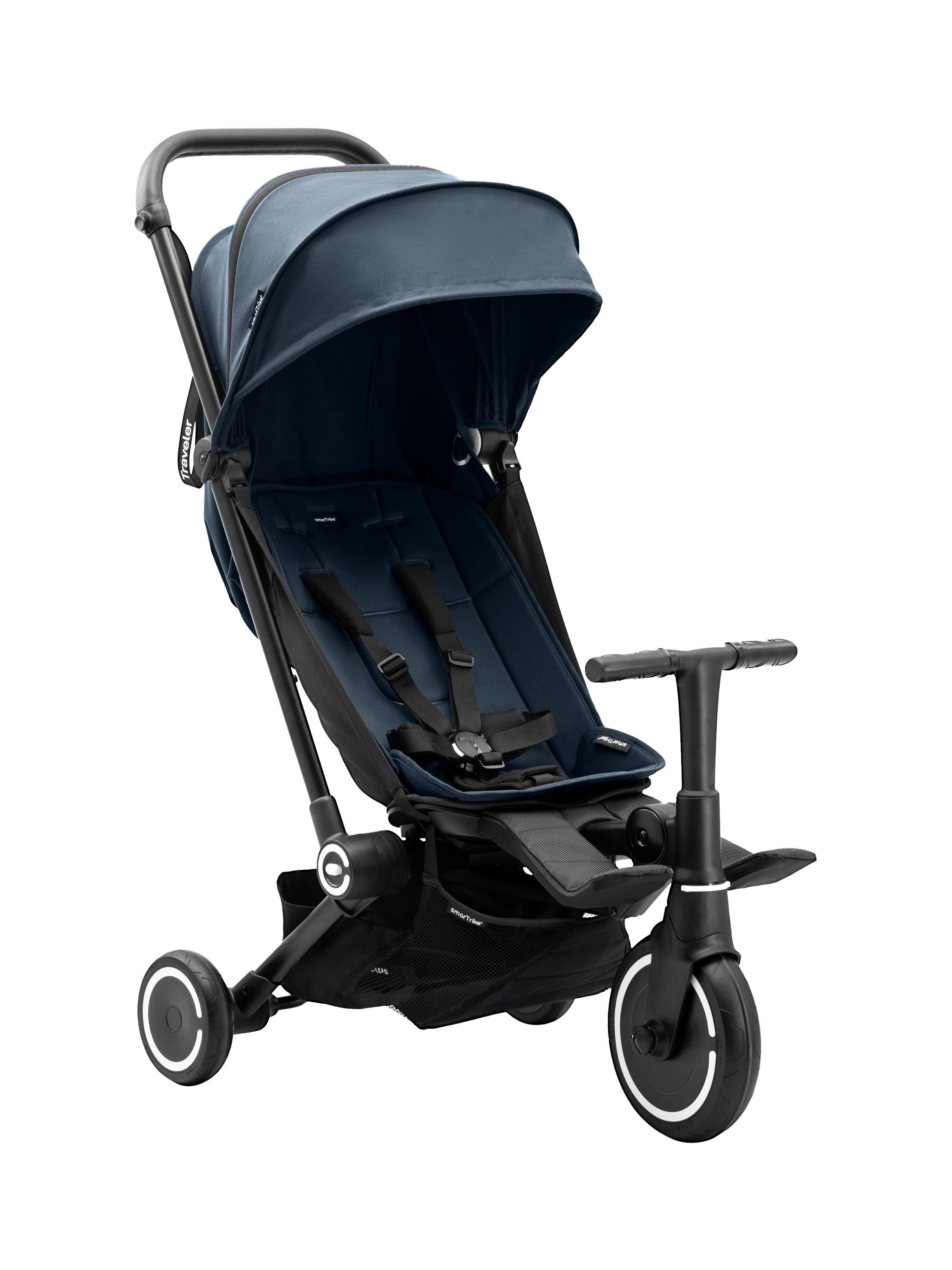 Allow your child to be part of the journey and not a mere passenger with the smarTrike Traveler, the first-ever active stroller for your child. The Traveler is the ultimate Active Stroller that easily transforms from a cosy infant stroller to an independent trike, all with just a push of a button.