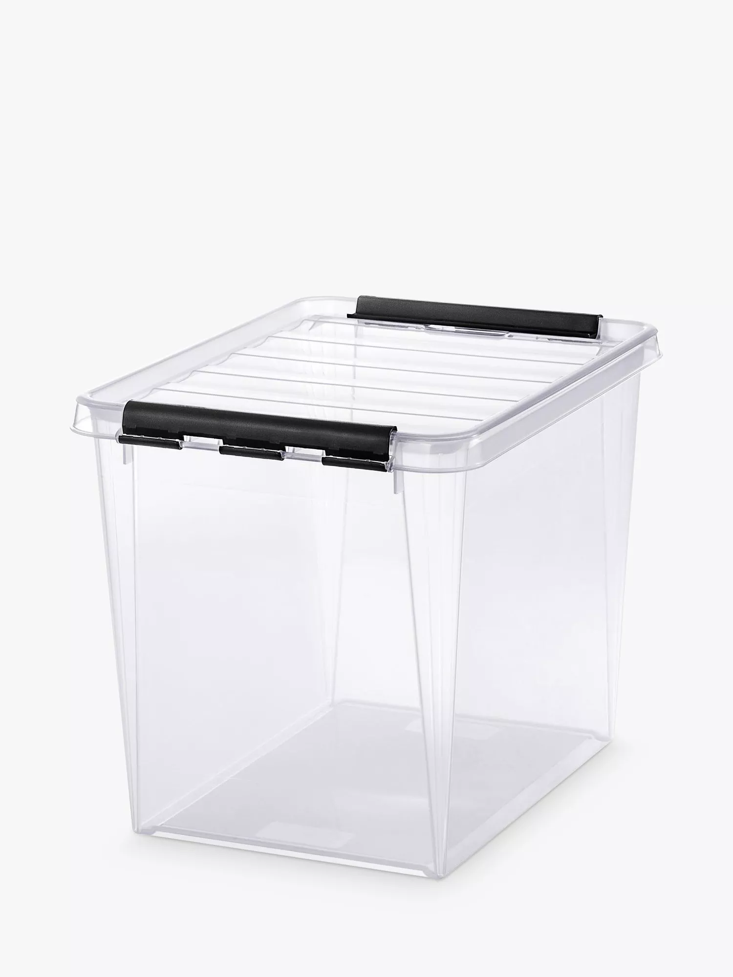 This plastic box provides practical storage for the hallway, entrance or utility room with strong clips to ensure tight lid closure.