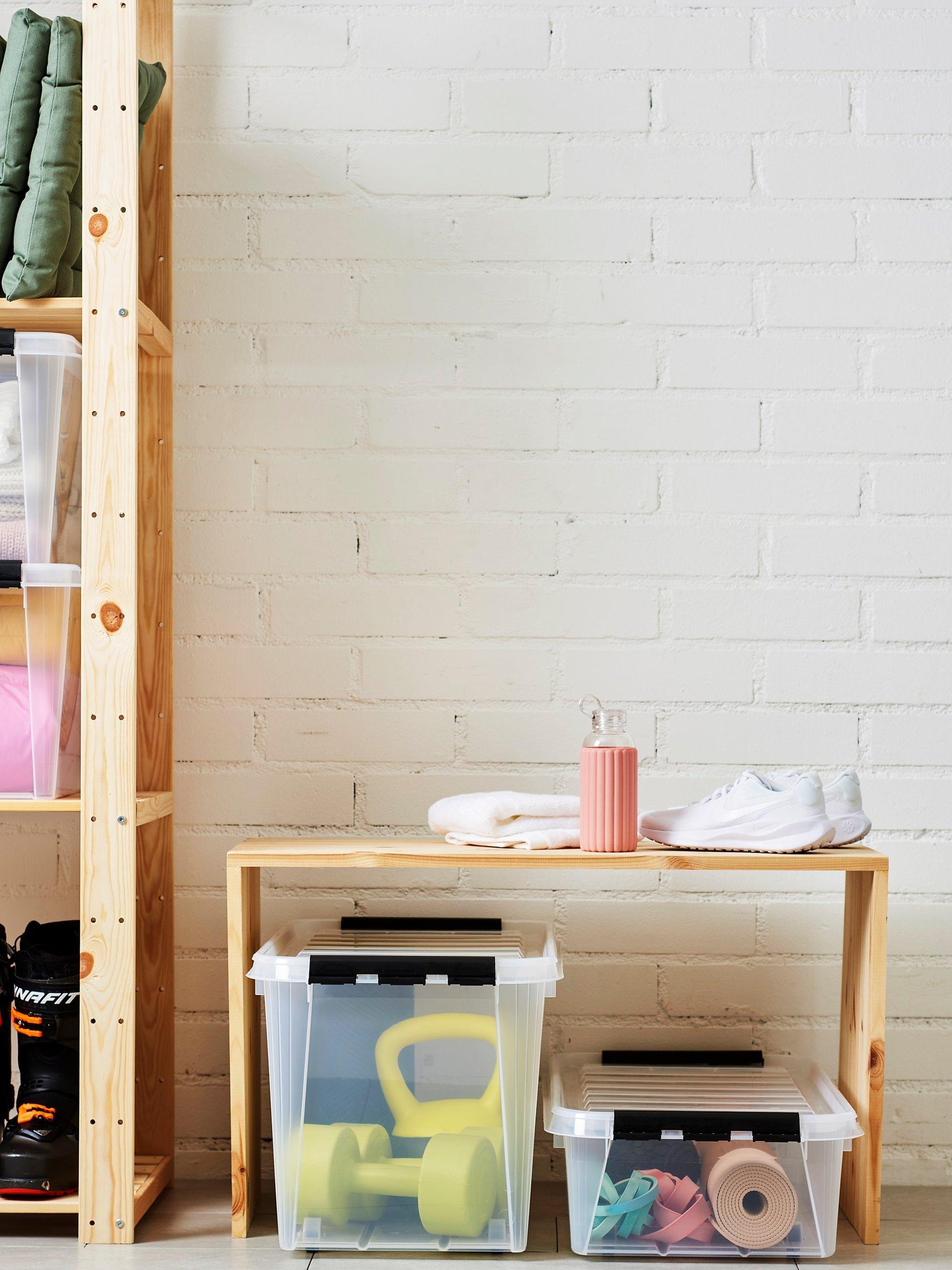 Boxes nest without lids and stack with them on. The sturdy recycled plastic clips keep the lid firmly in place.