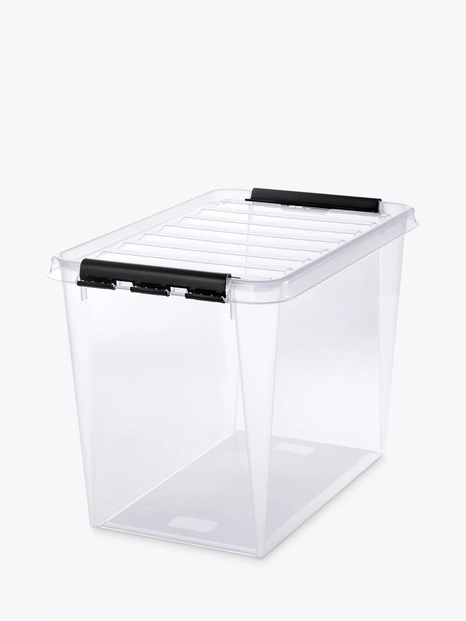 A spacious storage box for all-round storage with a size that's ideal size for bulky items and strong clips to ensure tight lid closure.