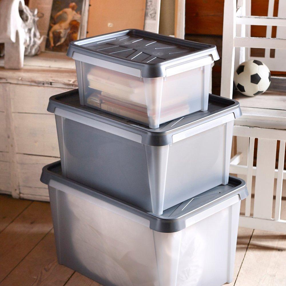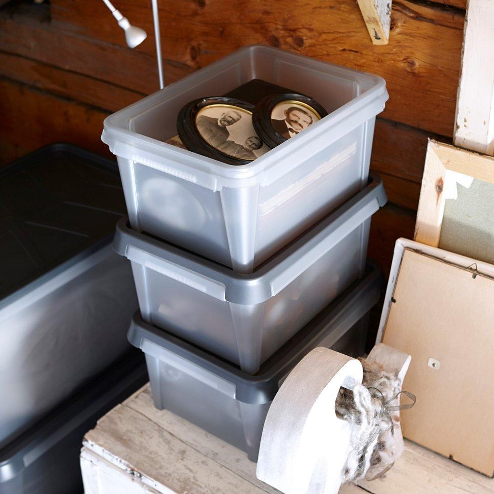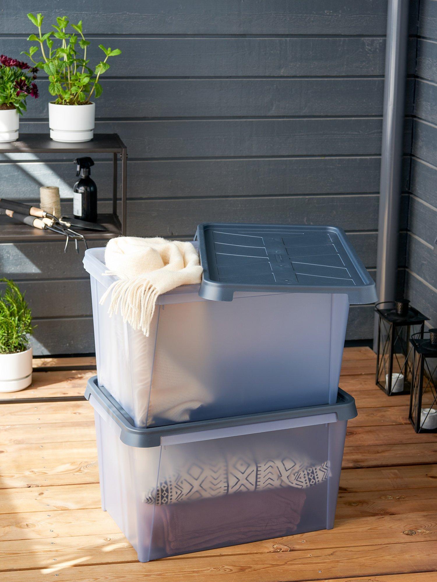 This stackable storage box is completely watertight (IP64) to keep out damp, dust, dirt and, bugs. Great for the garage, the loft, or when camping or caravanning.