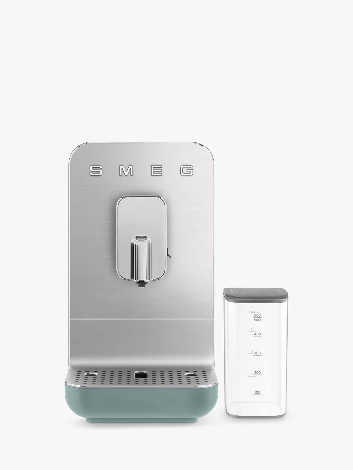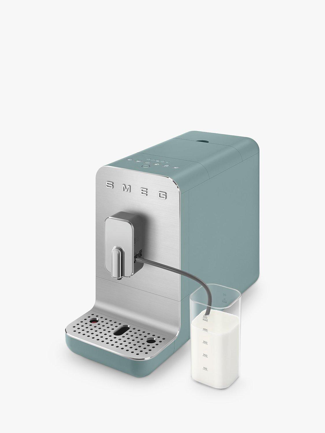 The Smeg automatic bean-to-cup coffee machine, BCC13, is incredibly compact in size, so it fits neatly into any kitchen. It has a contemporary design characterised by soft essential lines, shiny profiles and brushed aluminium.