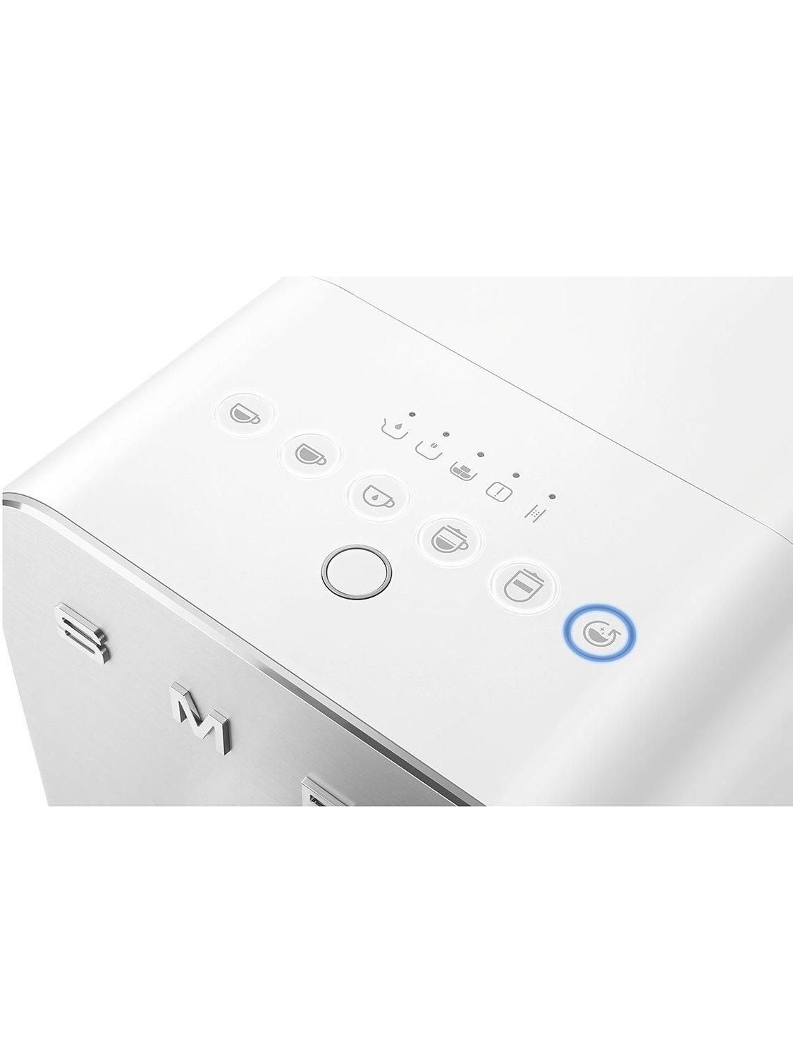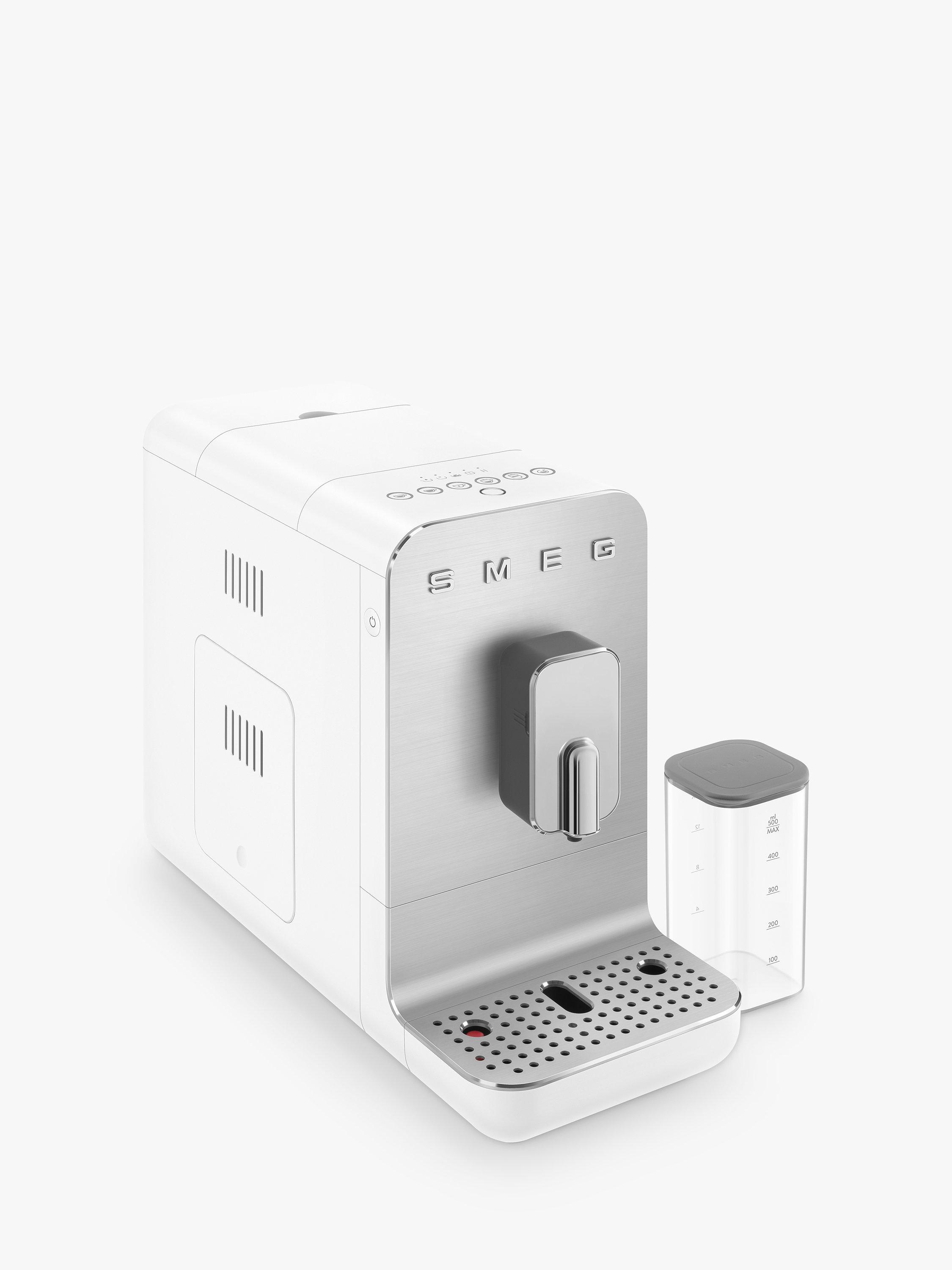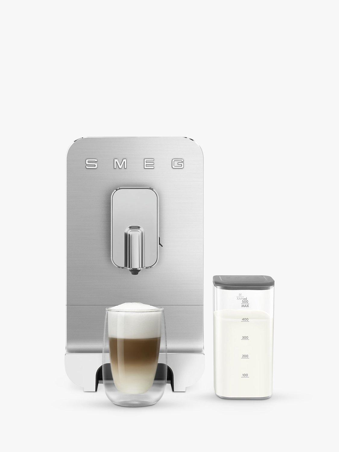 The Smeg automatic bean-to-cup coffee machine, BCC13, is incredibly compact in size, so it fits neatly into any kitchen. It has a contemporary design characterised by soft essential lines, shiny profiles and brushed aluminium.