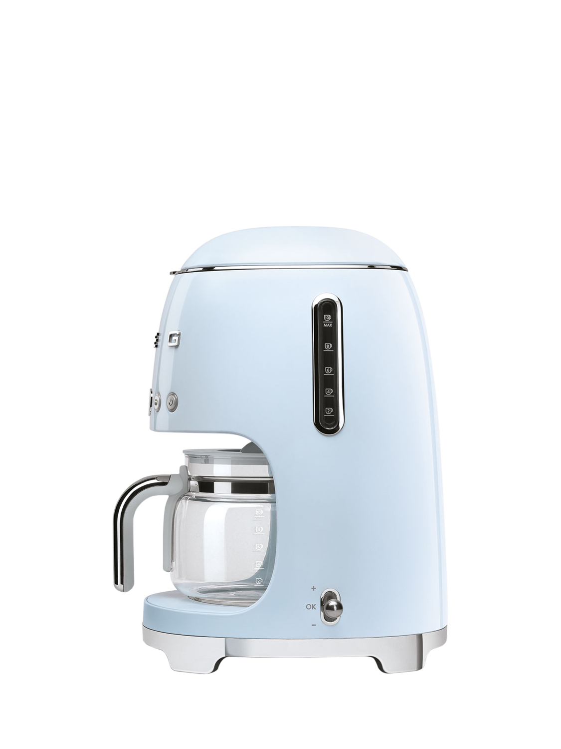 Filter coffee on demand - the Smeg DCF02 drip coffee machine allows you to prepare a deliciously aromatic, richly-flavoured coffee with the option of selecting the aroma intensity you prefer, to satisfy both the most delicate palates and those in search of more intense flavours. This machine combines high levels of performance with a unique design, making it an object to show off too.