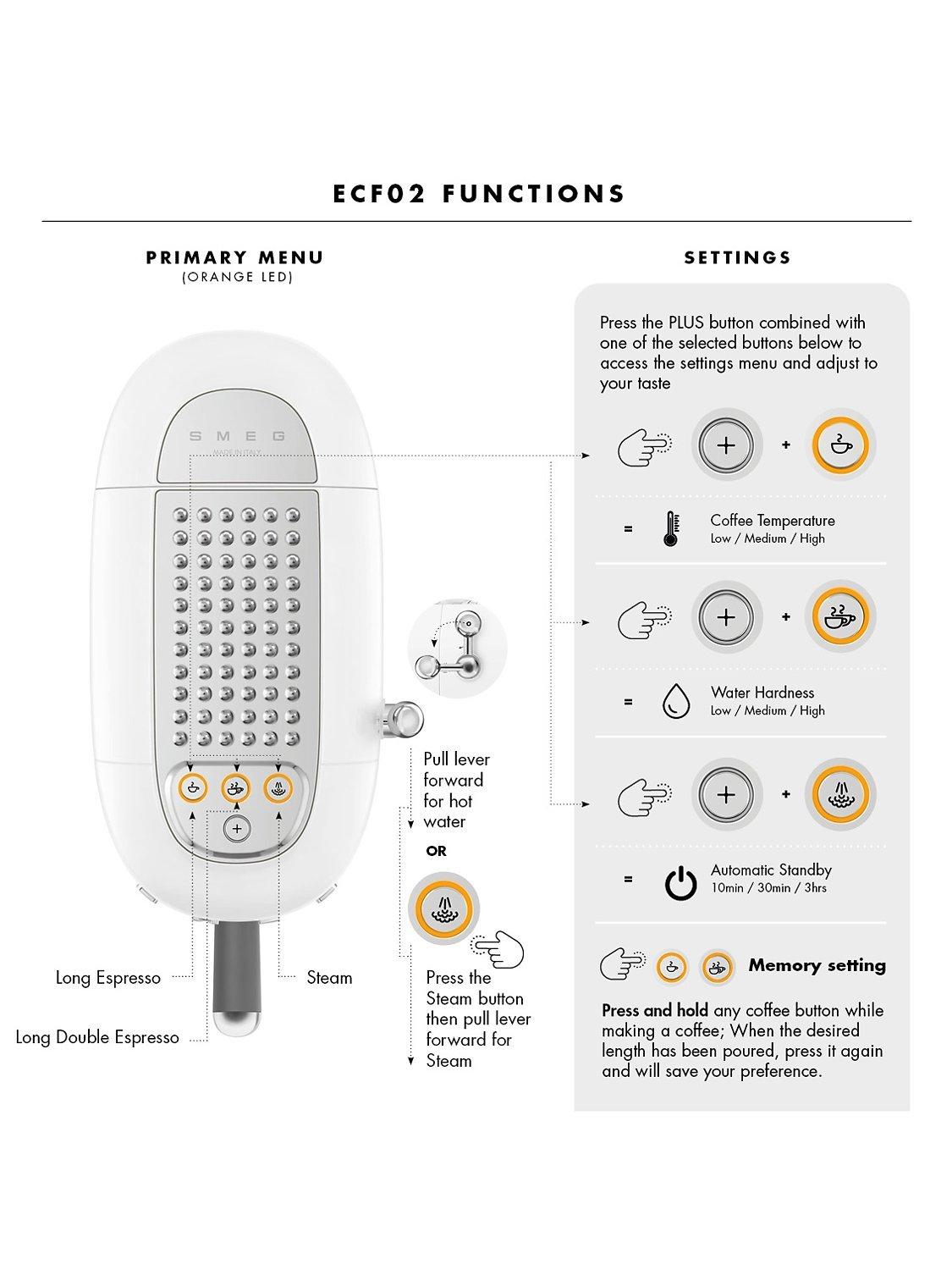 Designed with user friendly controls with adjustable settings and option to select single/double espresso and long single/double espresso or the activation of steam.