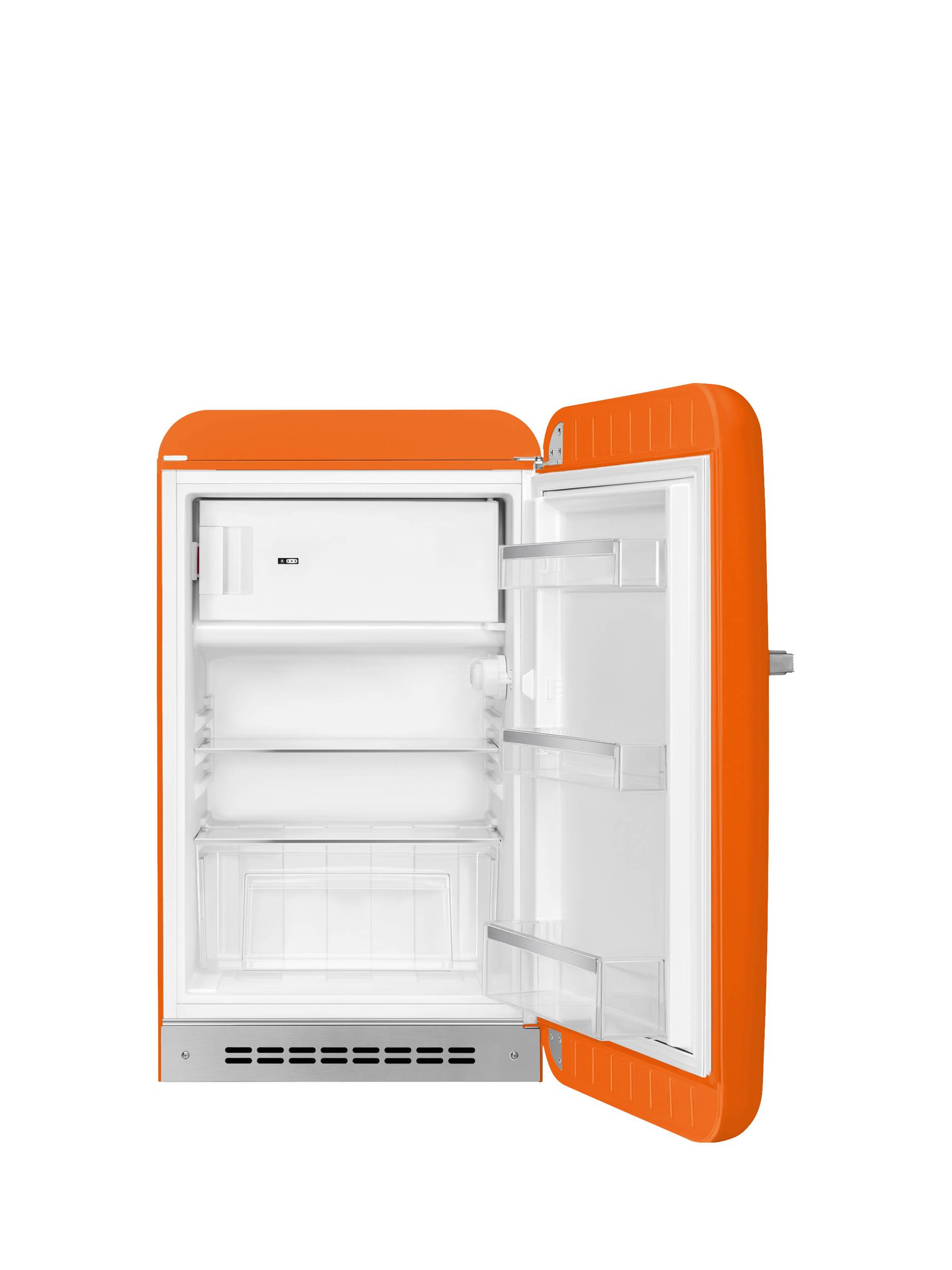 A small fridge with a big personality. At just 1 metre high and 54 cm wide, the FAB10 still offers all of the usual features expected from a Smeg FAB refrigerator, and at only 35dB(A), it is practically silent, perfect for apartments or offices.