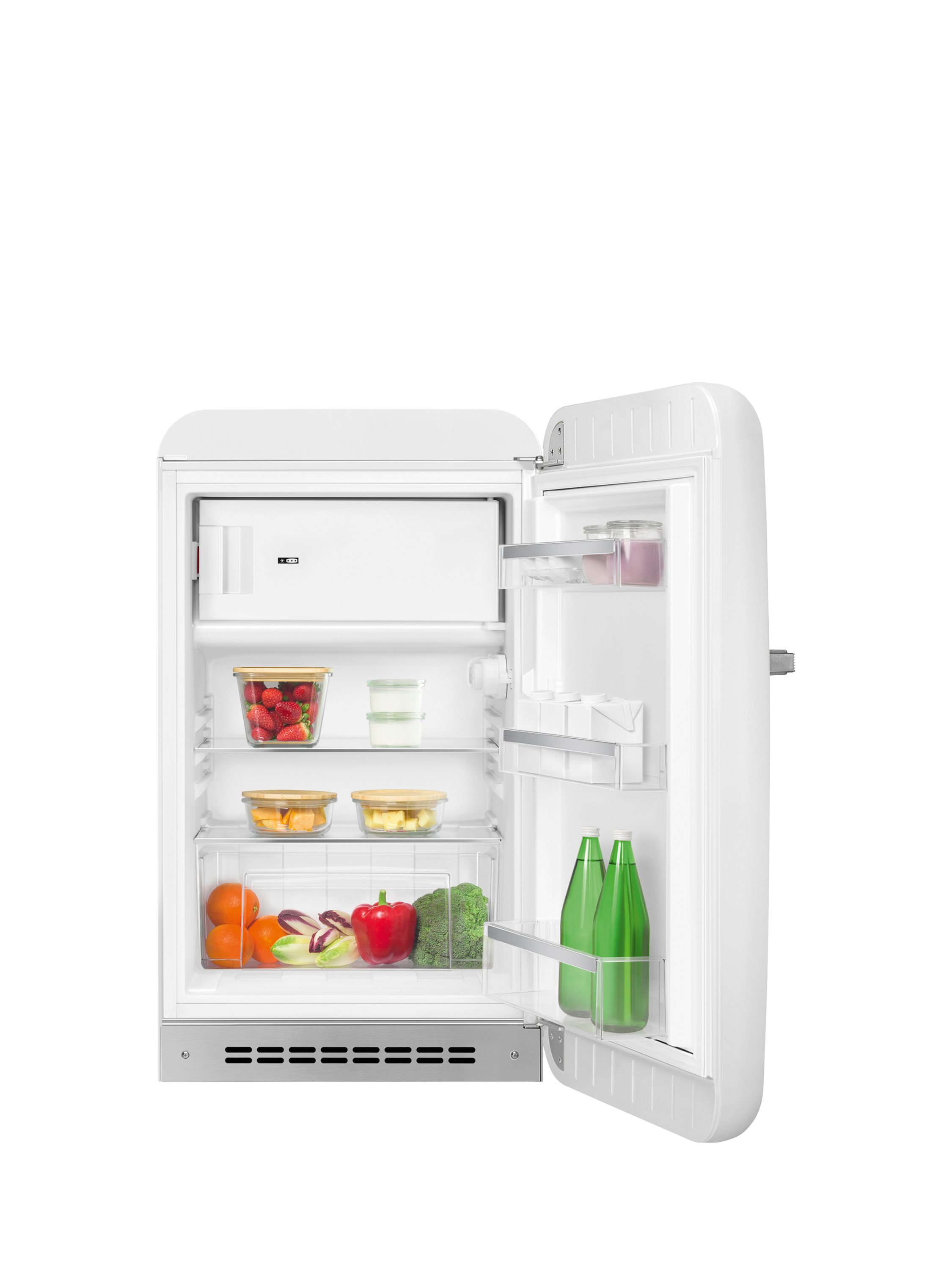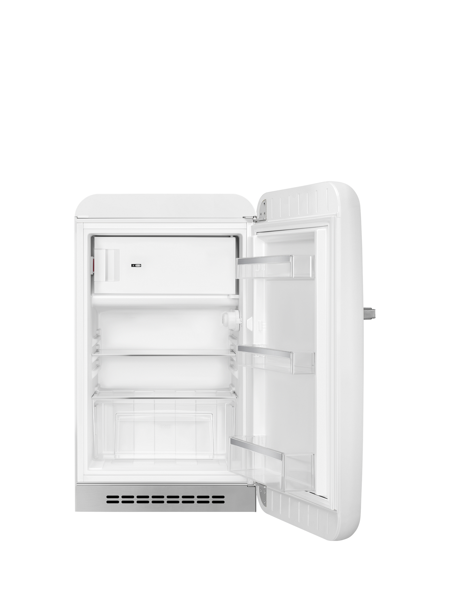 A small fridge with a big personality. At just 1 metre high and 54 cm wide, the FAB10 still offers all of the usual features expected from a Smeg FAB refrigerator, and at only 35dB(A), it is practically silent, perfect for apartments or offices.