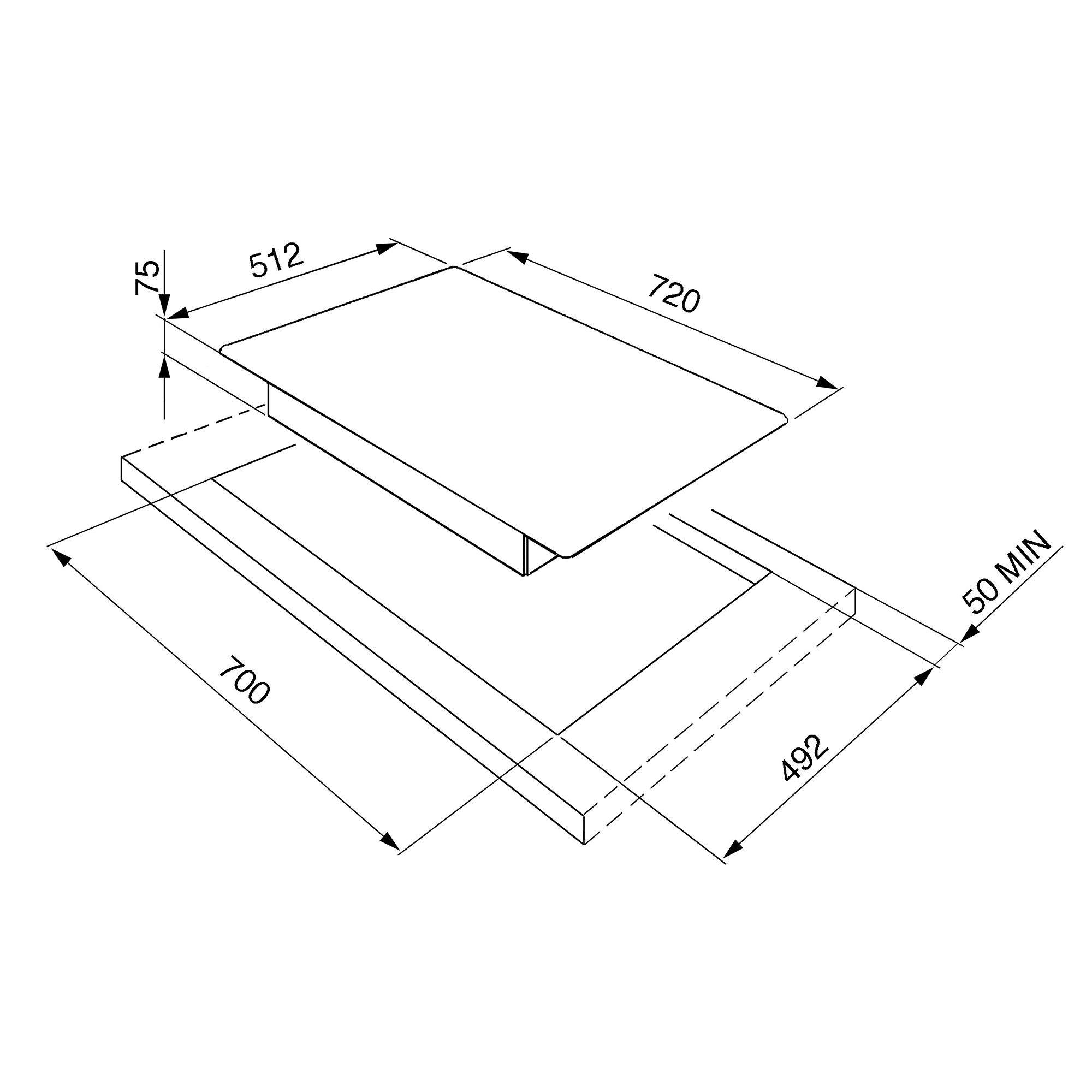 Please note: there should be a minimum height clearance of 75cm between a gas hob and the cooker hood above it.