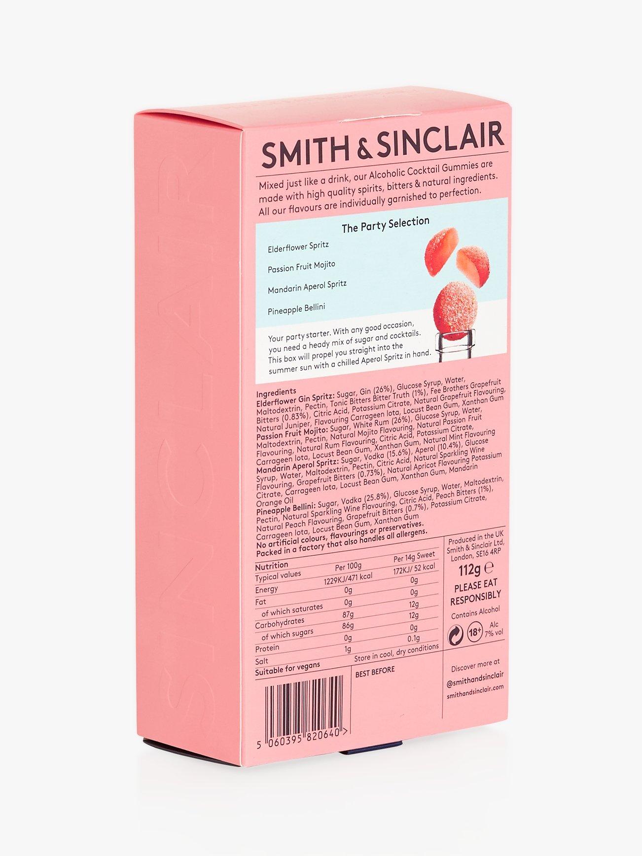 All Smith & Sinclair gummies are expertly mixed with fresh fruit, herbs, premium spirits and syrups mixed and coated with garnish infused sugars and hold a subtle kick at 7% ABV (equivalent of ½ shot of alcohol).