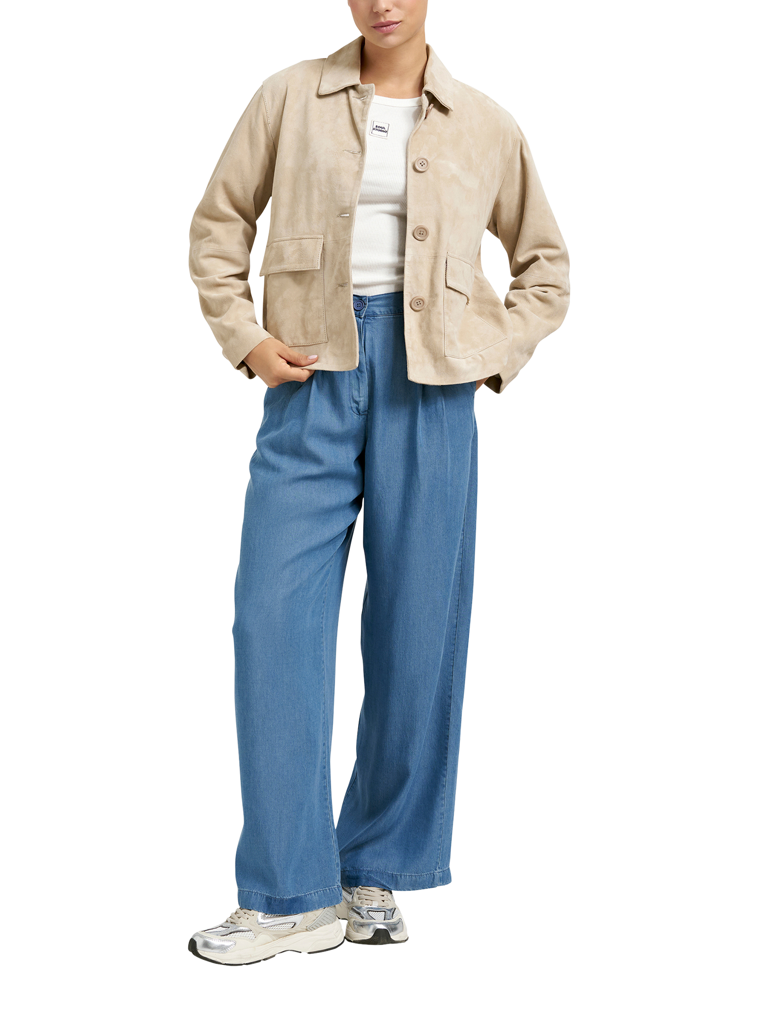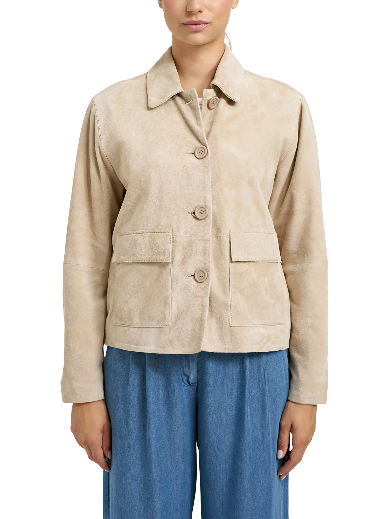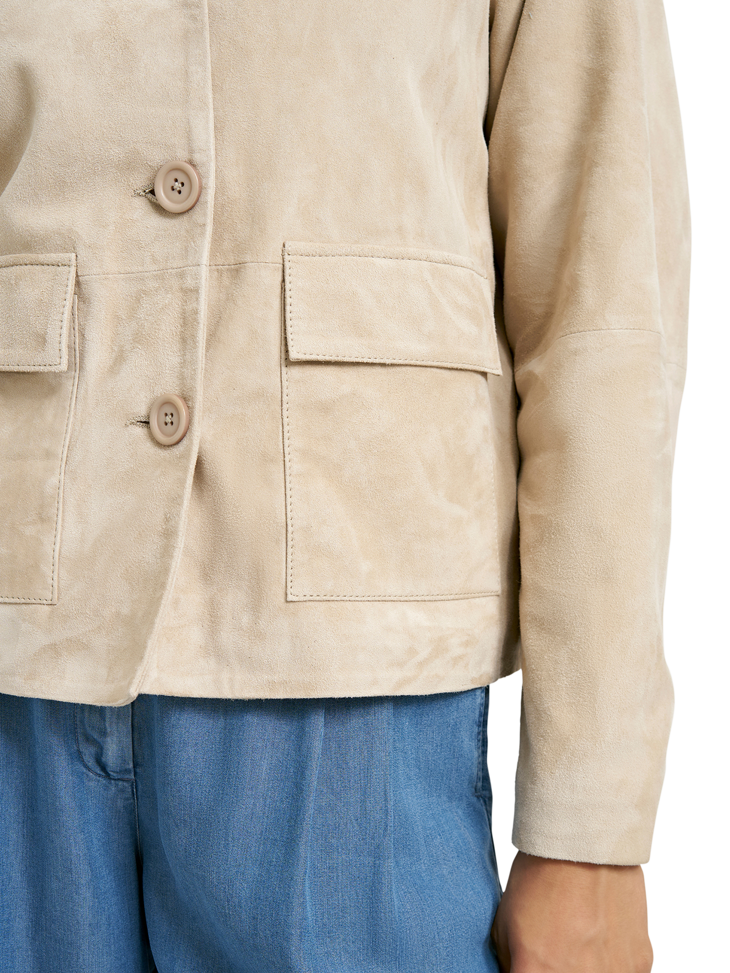 A timeless wardrobe essential, the suede jacket from Smith & Soul offers everyday wearability. Crafted with subtly exposed stitching and seamed panels, its boxy silhouette offers effortless style that works season after season. Finished with tonal buttons, this versatile jacket layers beautifully over all your favourite looks, delivering understated elegance.