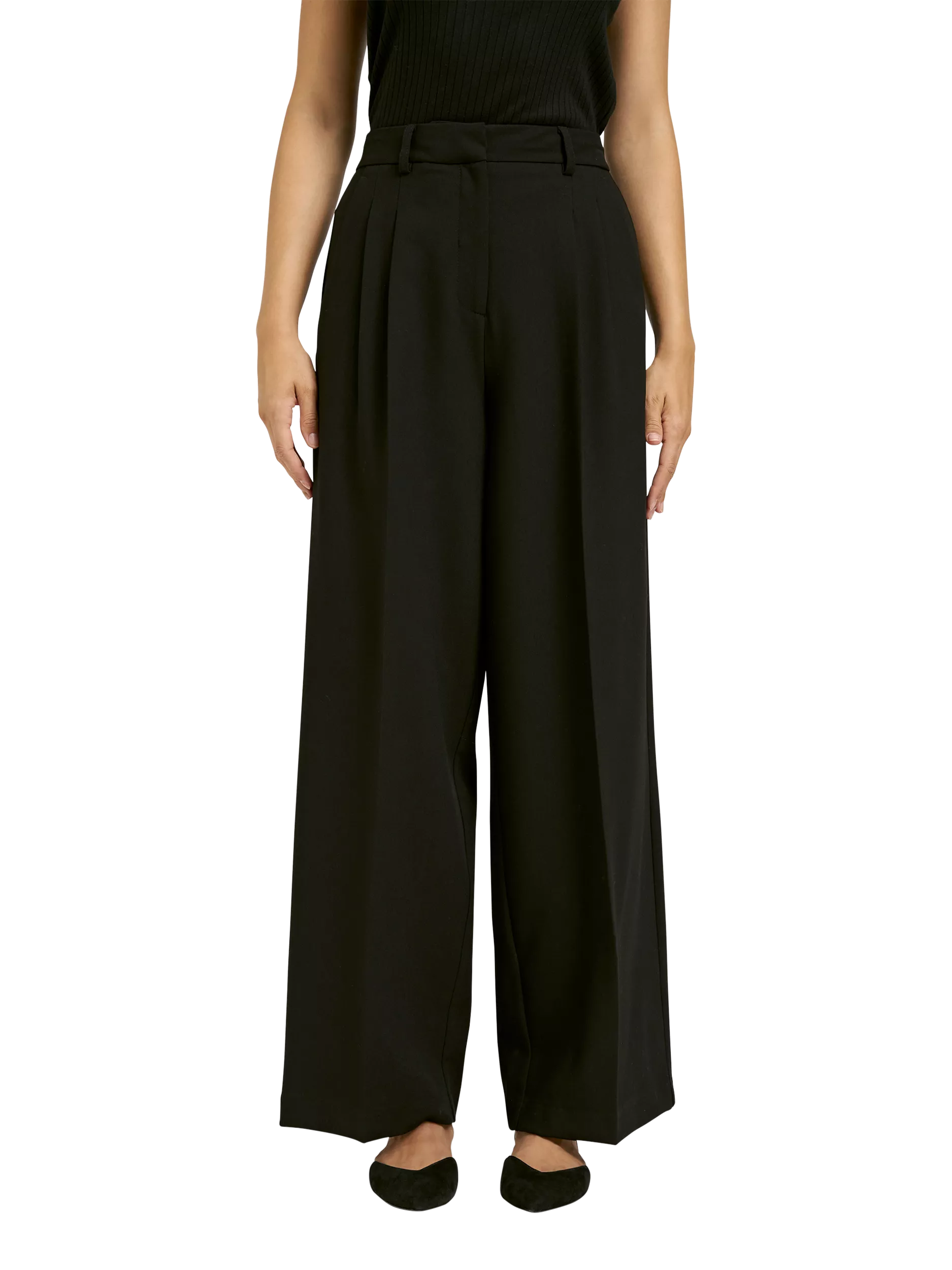 These high-waist trousers from Smith & Soul feature a double pleat detail, side pockets and mock welt pockets at the back. Cut in a straight wide leg silhouette with a concealed zip and a metal hook and bar fastening.