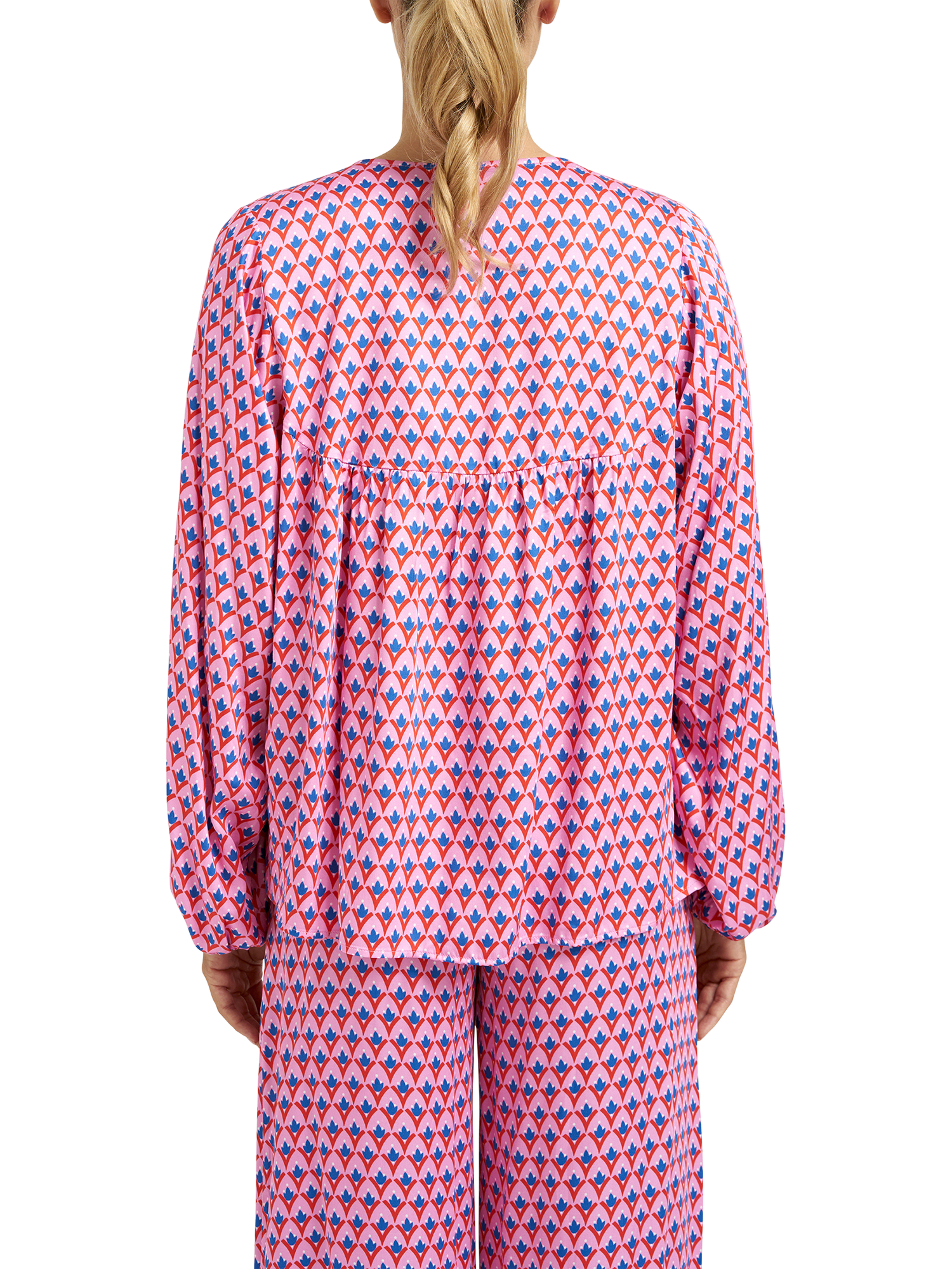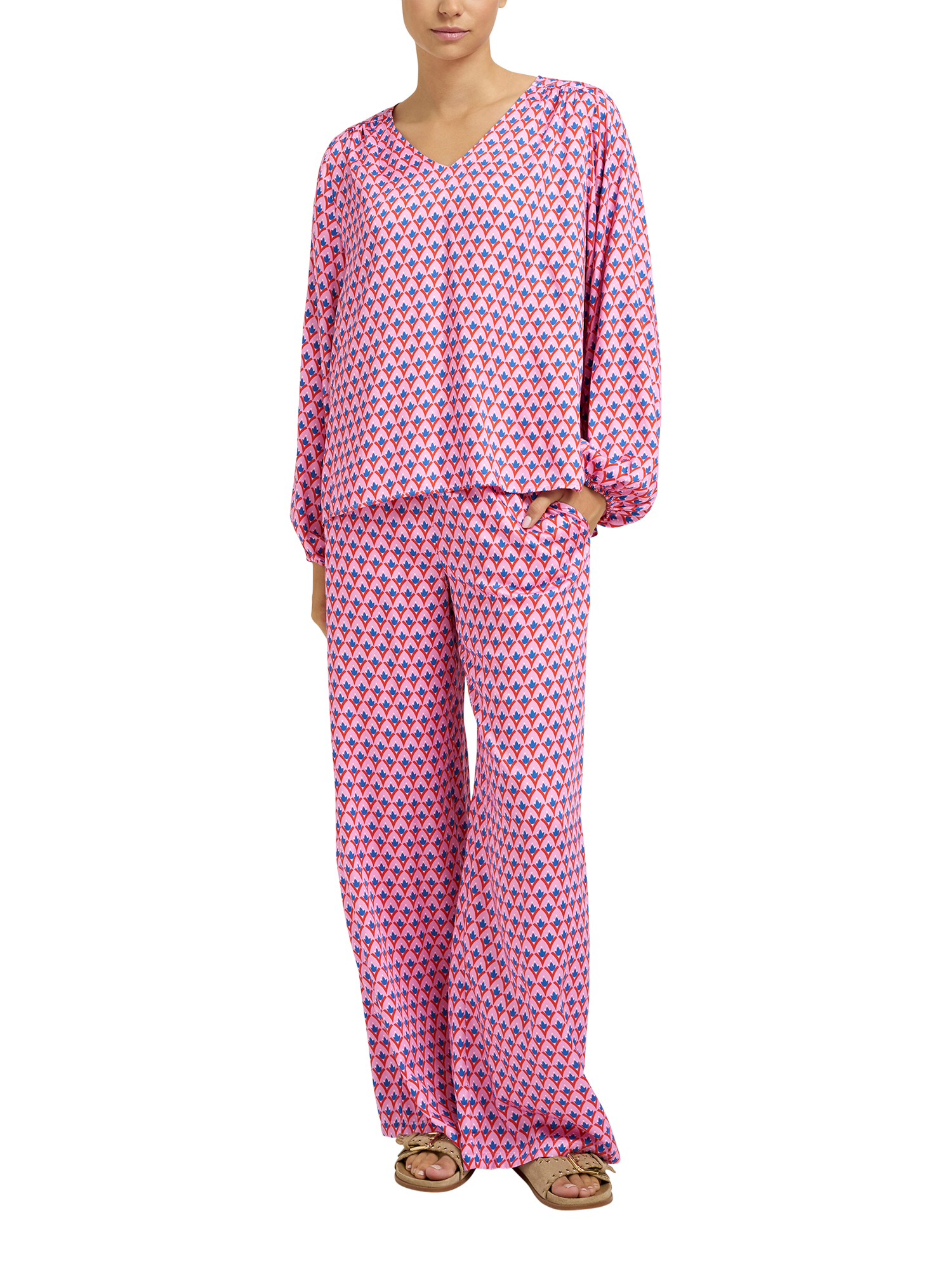 Pretty and polished with a clean, feminine silhouette. This geometric printed popover blouse from Smith & Soul features a flattering V-neckline and long sleeves finished with micro-pleated, elasticated cuffs for volume. Cut to the perfect length, it can be worn tucked into jeans or left loose for effortless styling.