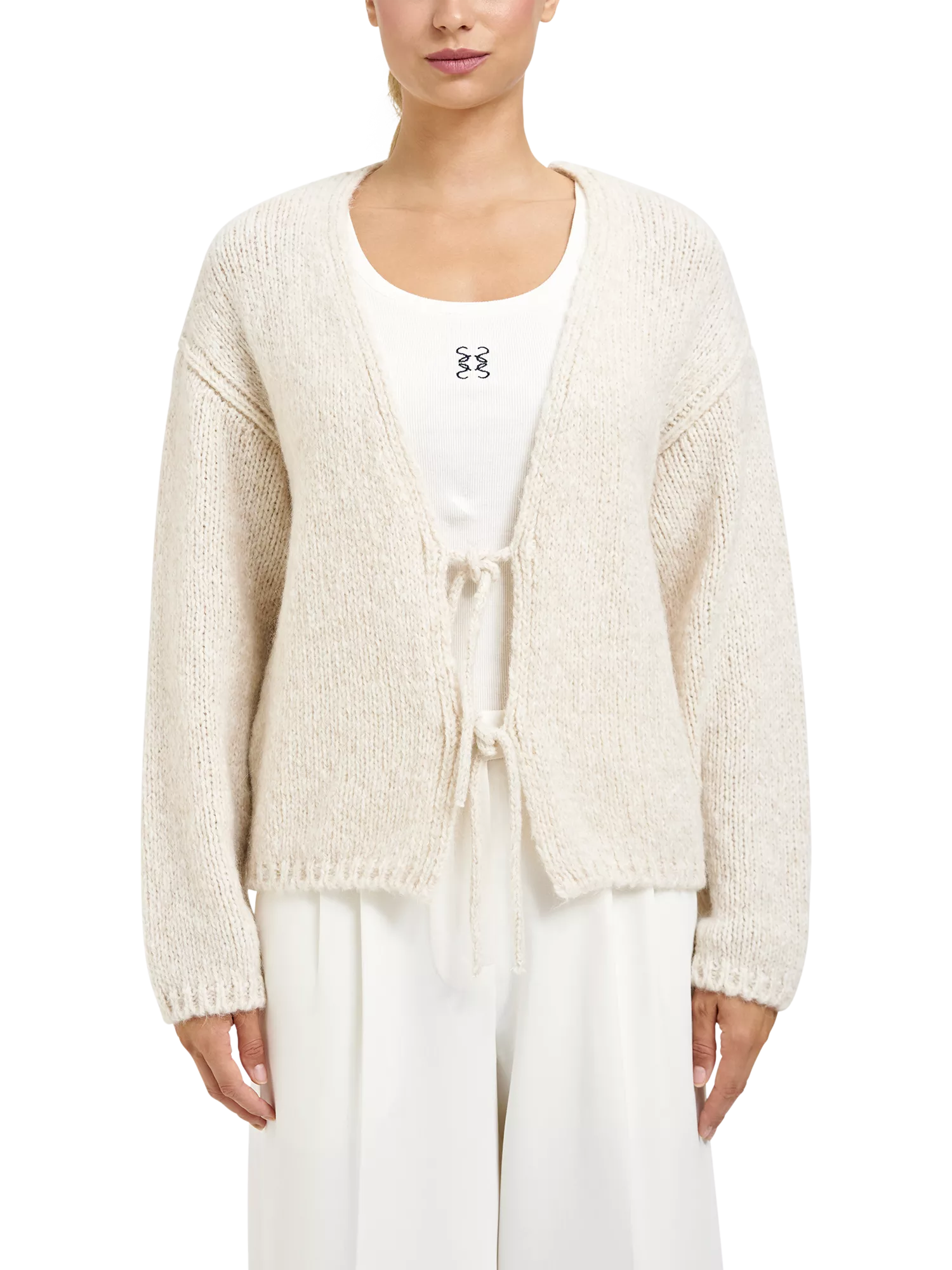 Layering neatly over dresses and tops, this lightweight Mouliné Cardigan from Smith & Soul has a cosy appeal, with both wool and luxurious alpaca in the fabric blend. This cardigan features a double-tie front fastening, drop sleeves and ribbed detailing at the hem and cuffs.