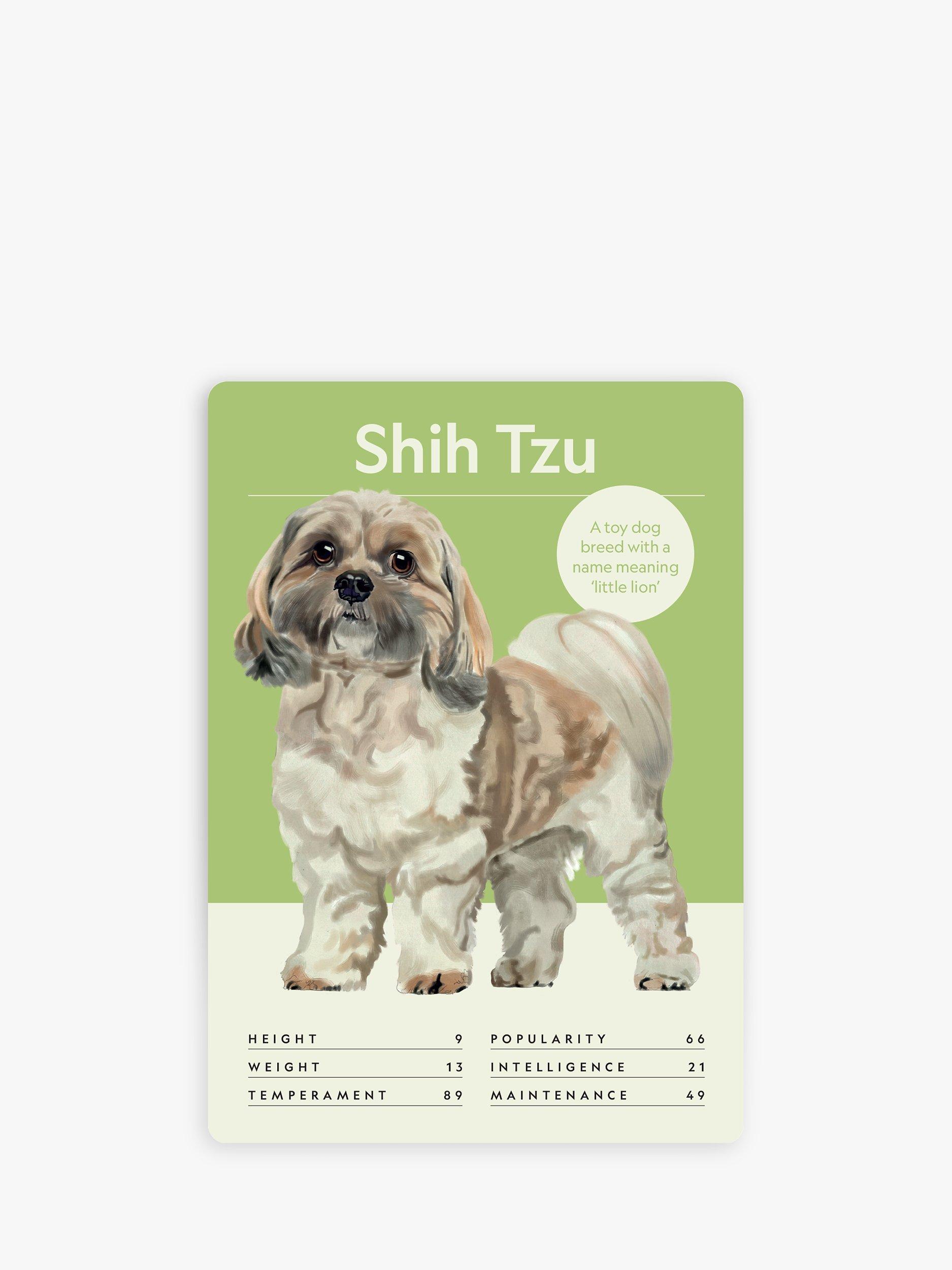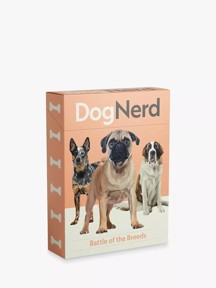 To play, deal all the cards equally, and no peeking! In turns, flip the card on top of your deck and choose from one of six categories: Height, Weight, Temperament, Popularity, Intelligence or Maintenance. Each have numerical values. Read one out, and if your pooch’s score beats the rest, take all the played cards from that round.