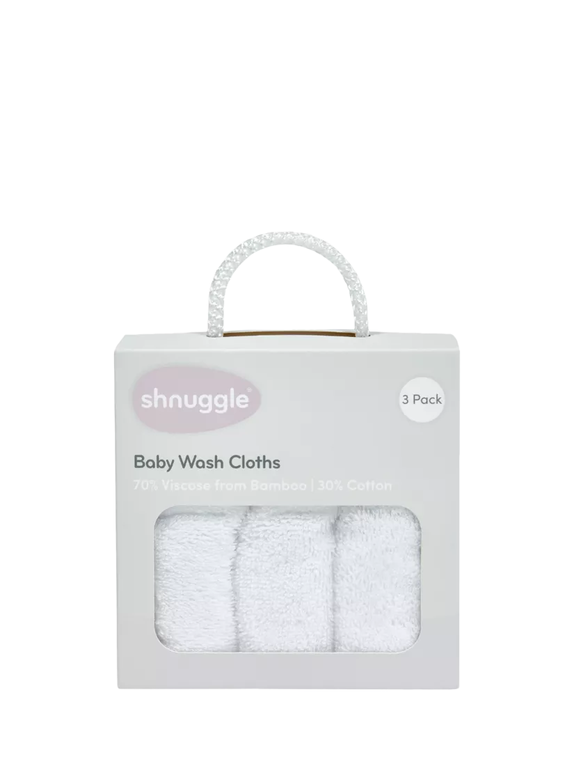 The soft Shnuggle baby washcloths, also known as flannels, are made from a bamboo and cotton blend to provide extra softness against baby's skin.