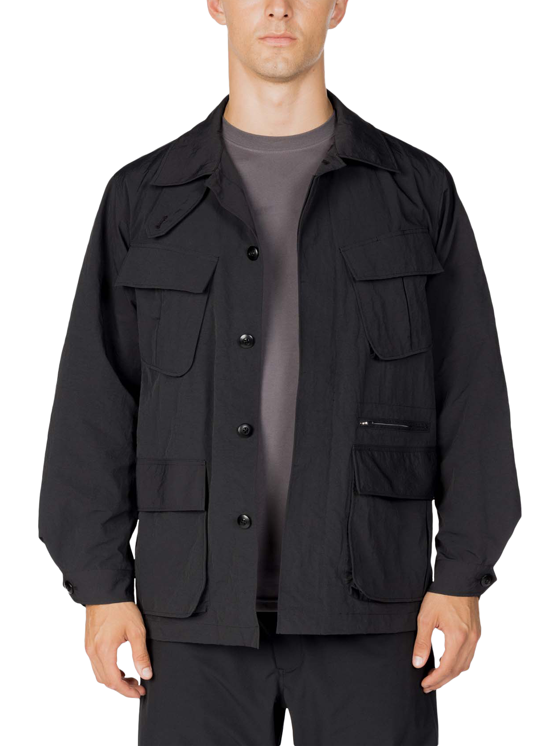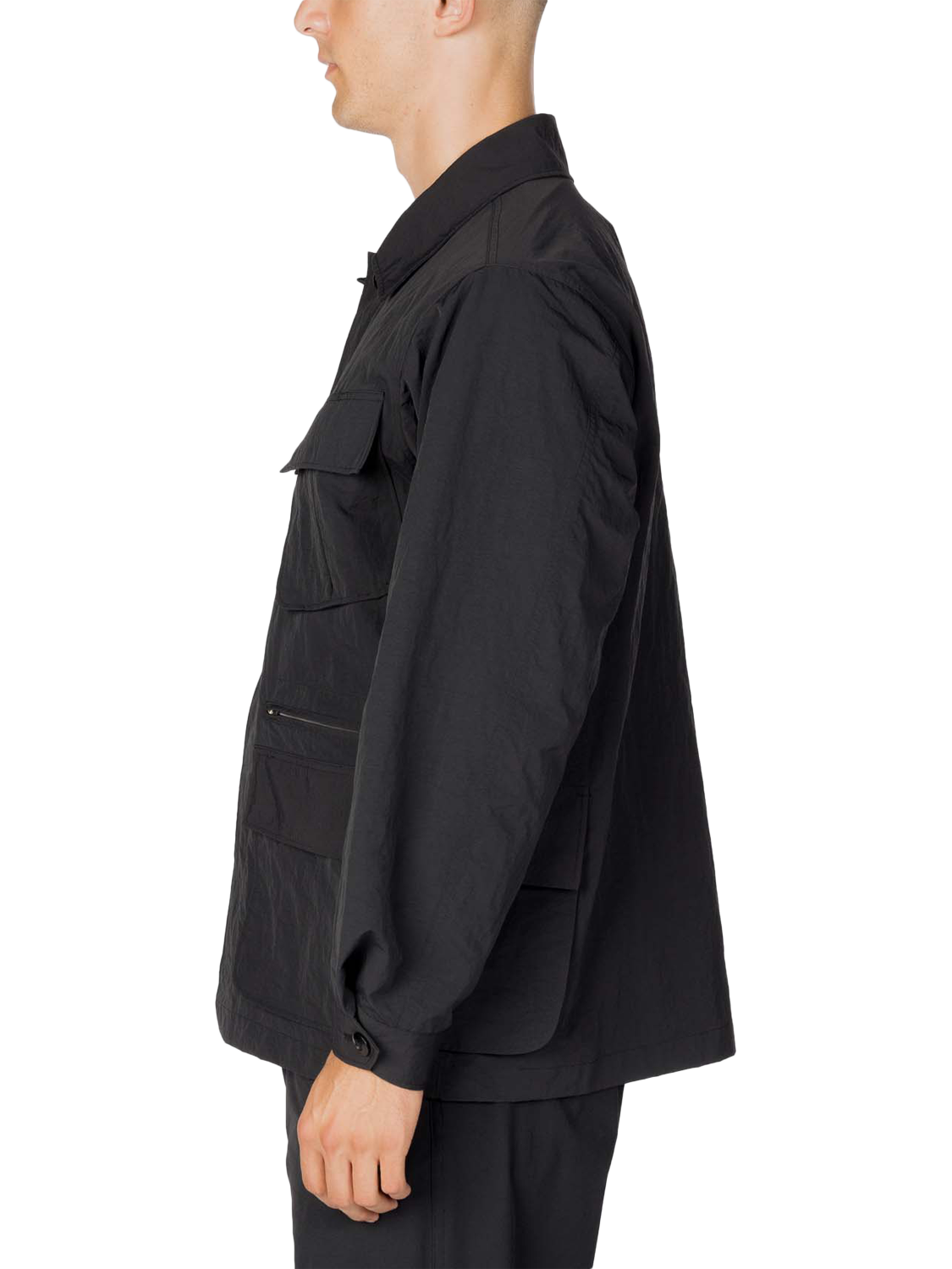 The Nylon Washer Jacket is crafted from high-density nylon with a washer finish, giving the fabric a subtle wrinkled texture and a distinctive, lived-in feel. Inspired by classic fatigue jackets, the design has been updated with functional adjustments to the size and number of pockets.