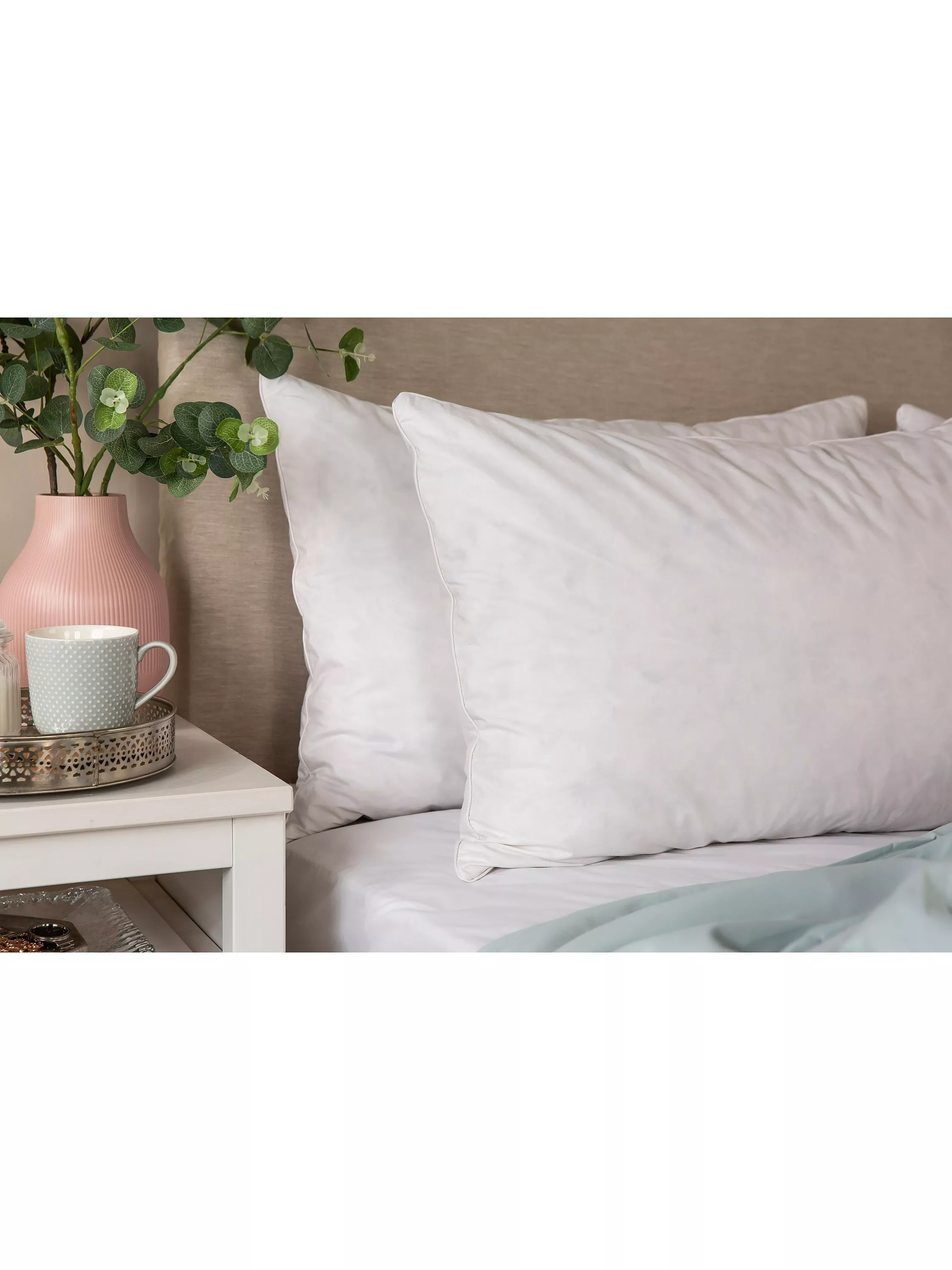 This luxurious pillow is filled with a higher ratio of feathers to down for greater support and natural breathability. The pure cotton cover is down-proof so feathers can't escape. It's perfect for those who sleep on their front or back and provides all the cosy cushioning you need for a comfortable and undisturbed night's sleep.
