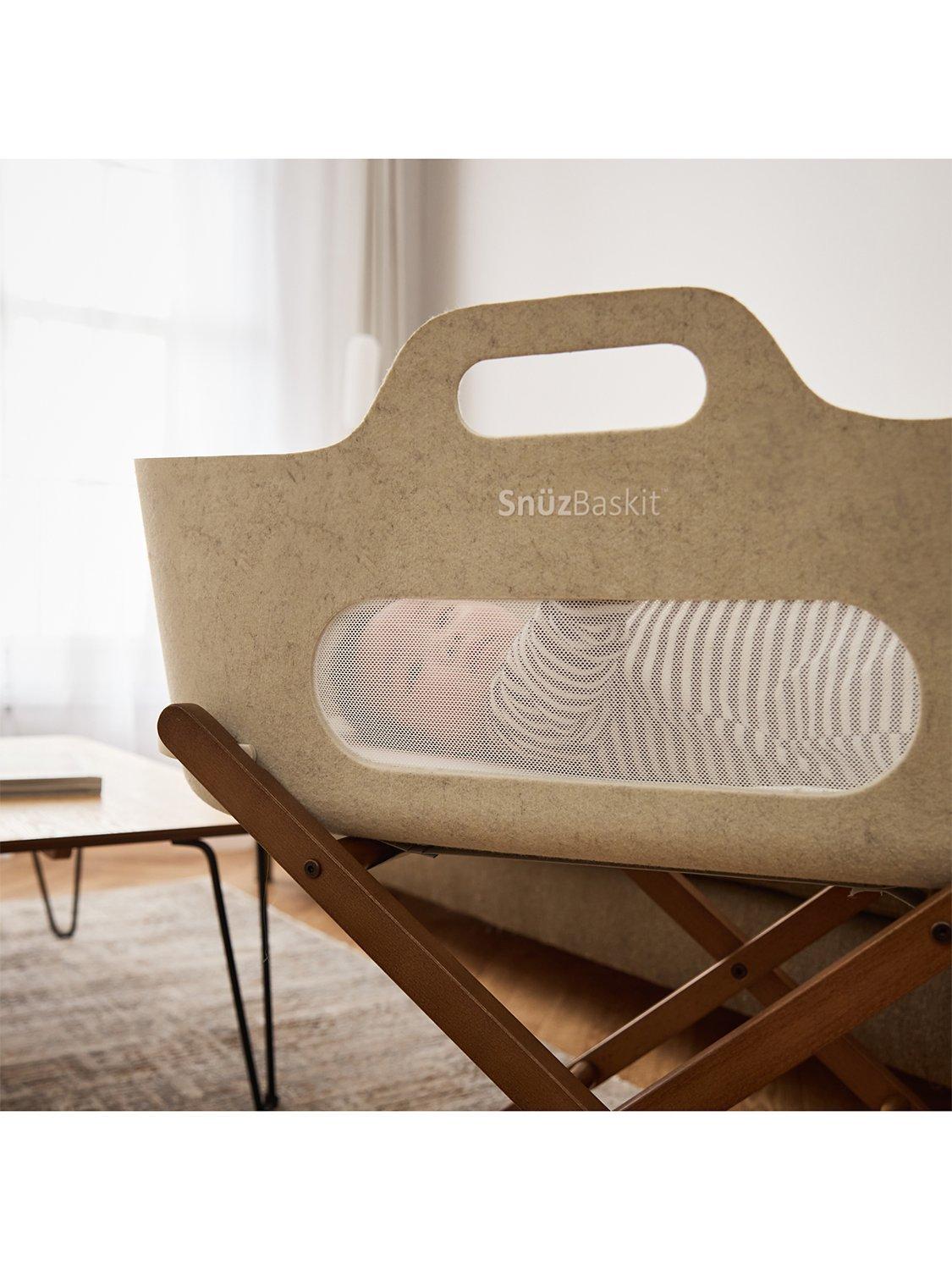 Whether you’re moving from bedroom to living room or visiting relatives, SnüzBaskit’s flexible yet sturdy design means you can move around the home and travel easily, without compromising on comfort or safety. The fully foldable basket stand means you can always keep baby close by and their sleep space consistent and familiar.