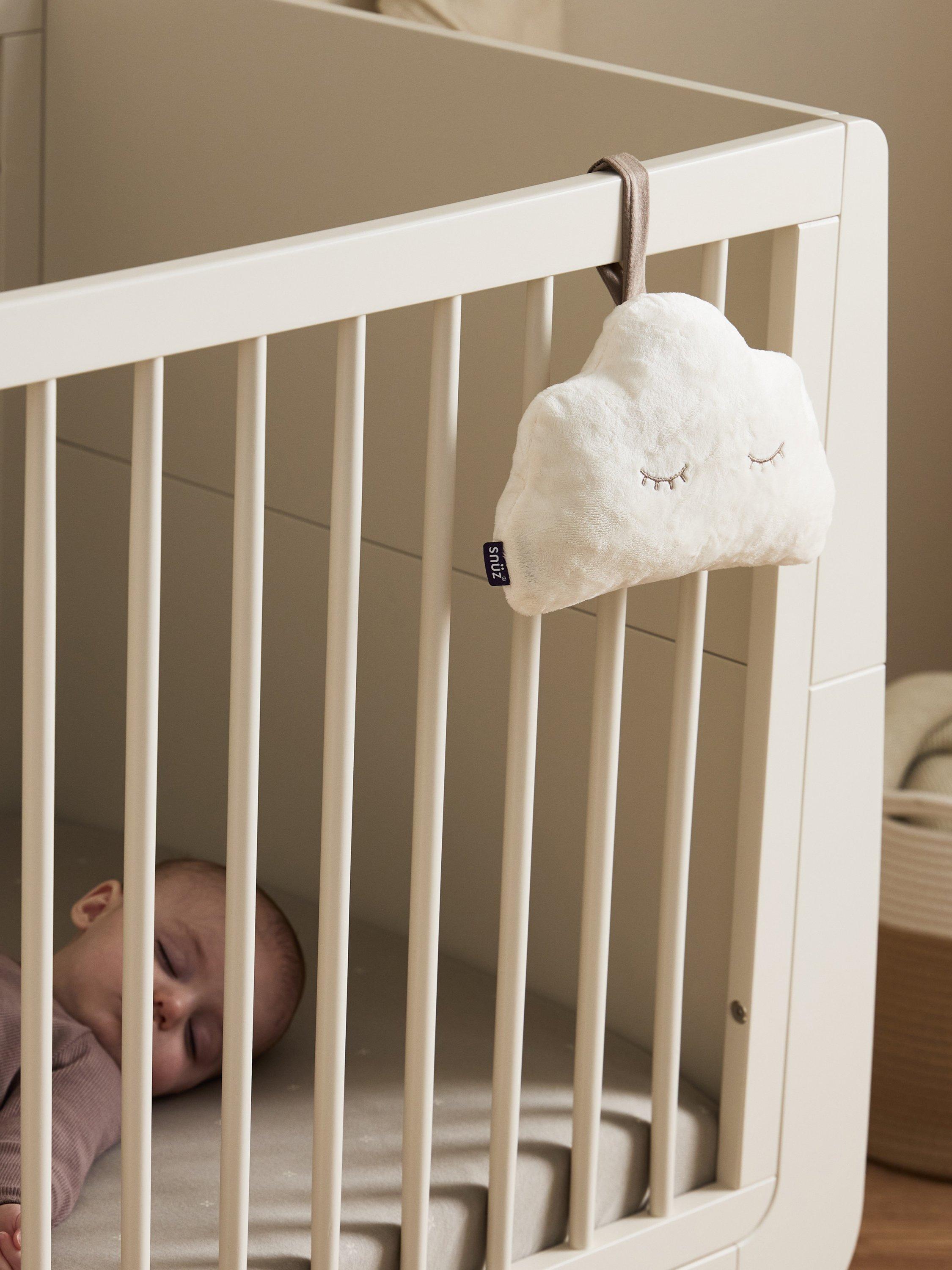 The lightweight cosy design and handy Velcro strap makes SnüzCloud the ideal sleep buddy for in the home on a cot or crib, and when out and about easily attaching to a pram or car seat.