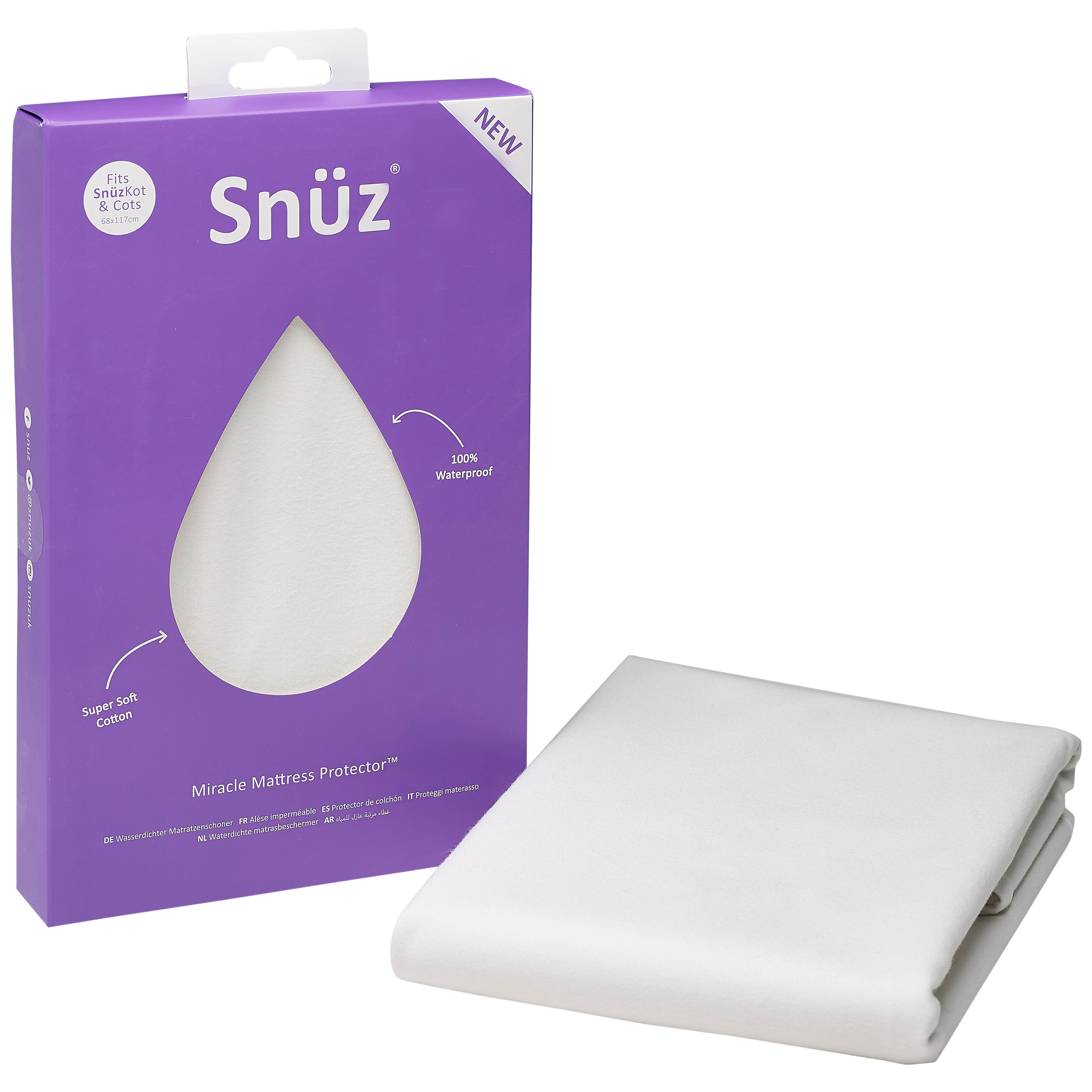 The NEW Snüz Miracle Mattress Protector is 100% waterproof, super soft and absorbent. The clever combination of soft outer cotton layers and a waterproof membrane protects your mattress and absorbs liquid from any little accidents.