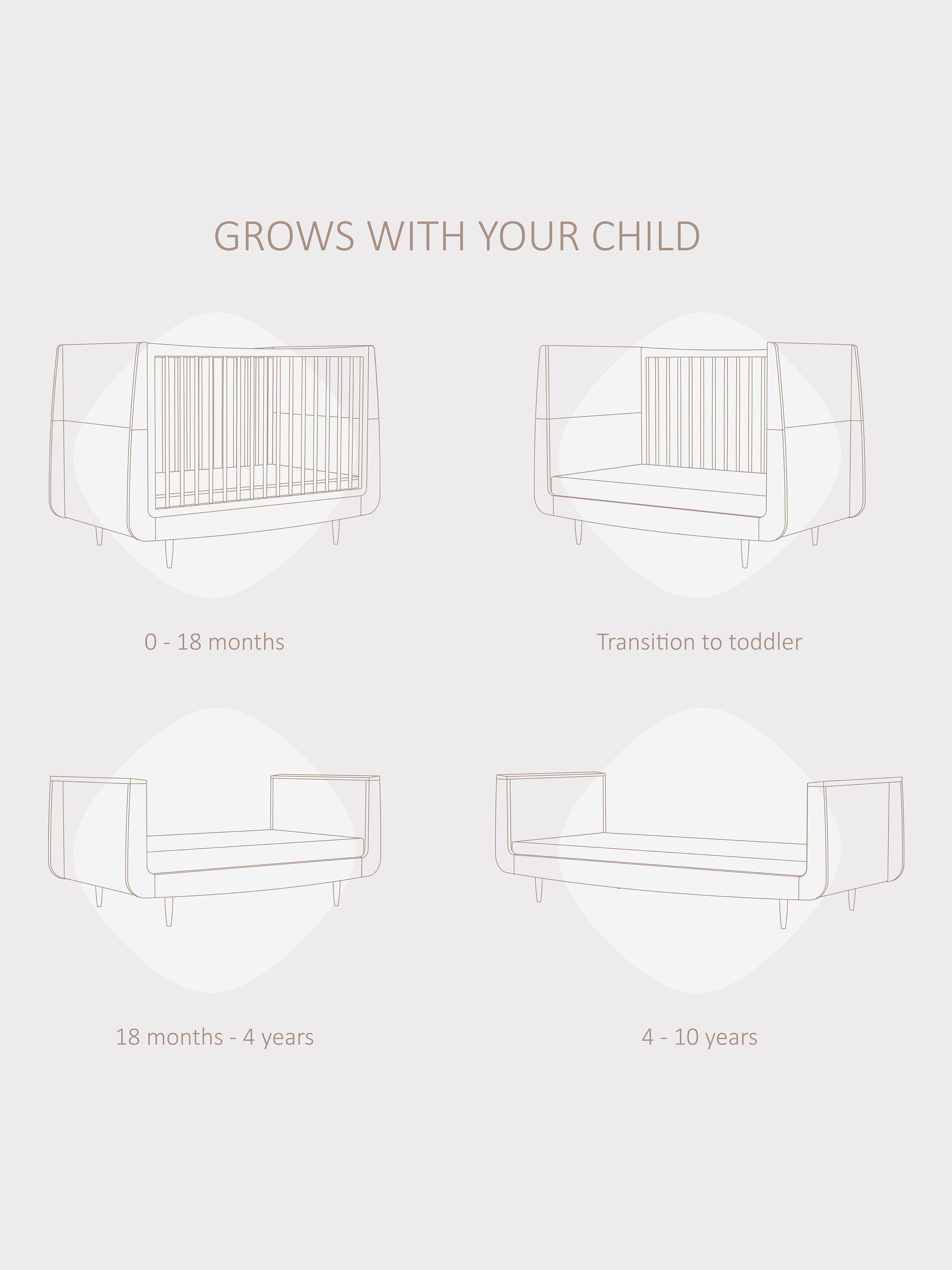 It grows with your child from birth, providing a comfortable and cosy environment as a cot, then converting to a stylish toddler bed for use up to four years old. When extended to a Junior bed, your child can keep the bed they love for up to ten years, lasting longer than a standard cot bed. To do this, you'll need to purchase the extension kit and the extension mattress separately.