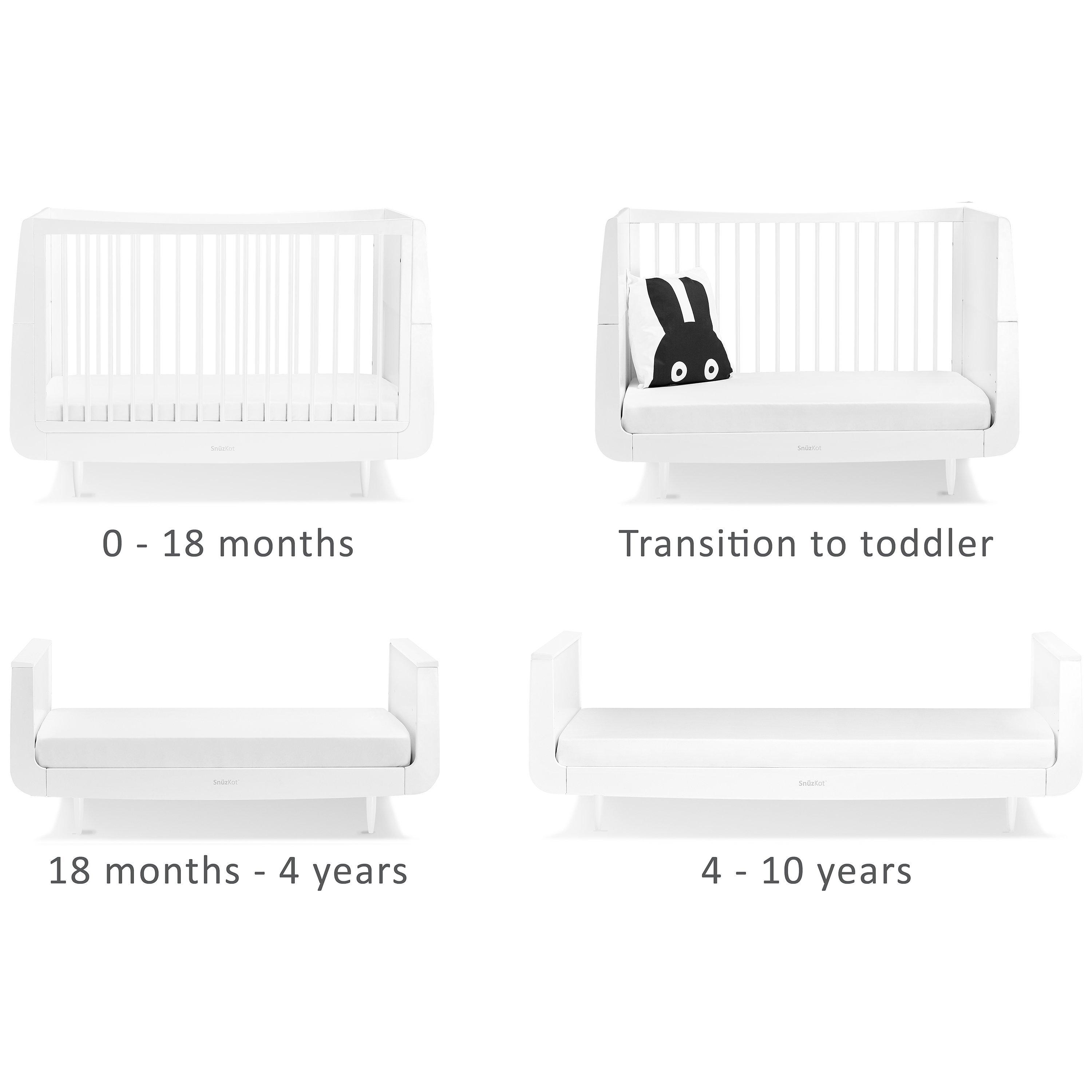 - Converts from cot to toddler bed and junior bed