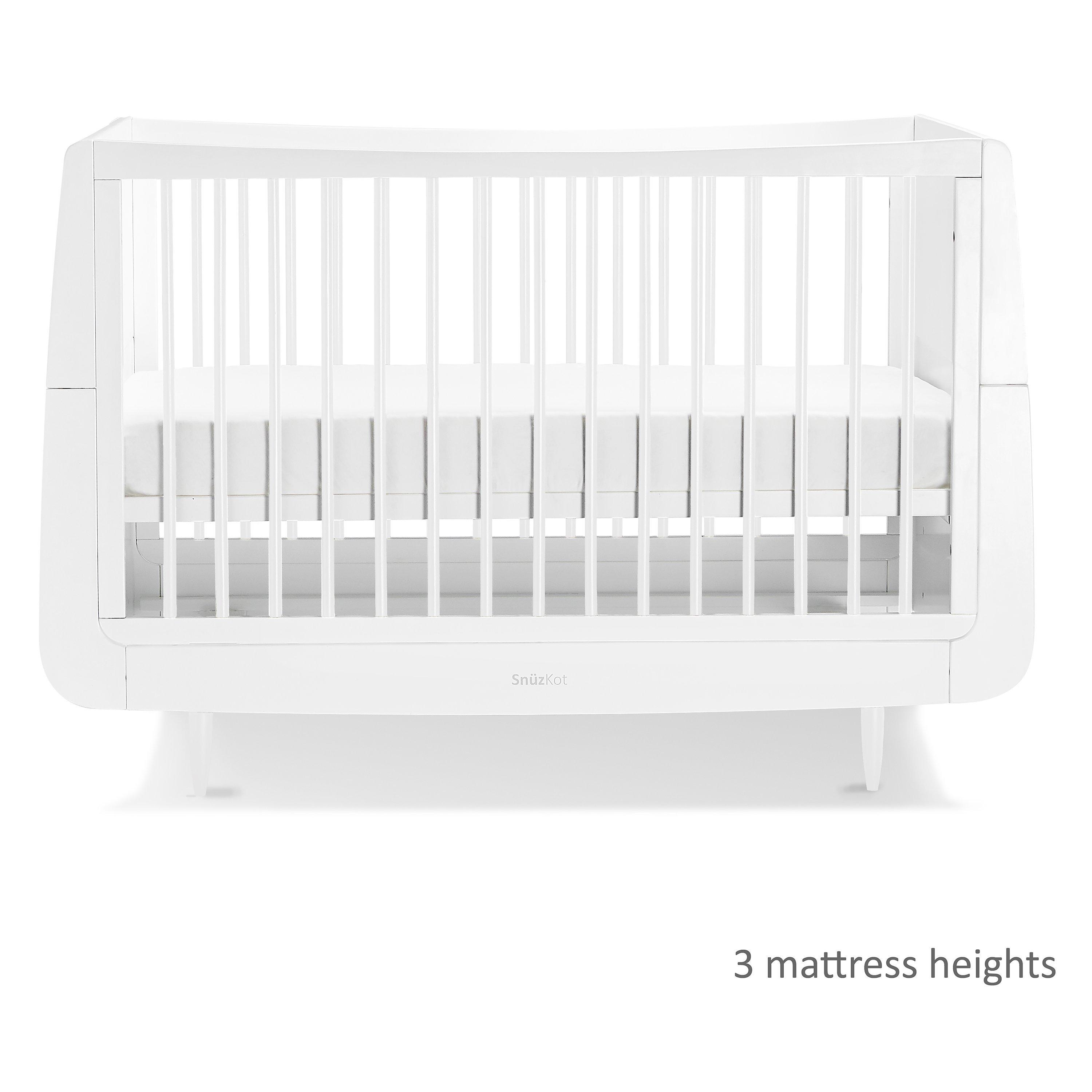 Designed to last, every SnuzKot is made using natural beech wood, without the use of MDF or veneer. The highest mattress position makes it easy to lift your newborn baby in and out, and as they grow and learn to sit and stand, the base can be lowered to help prevent them from climbing out.