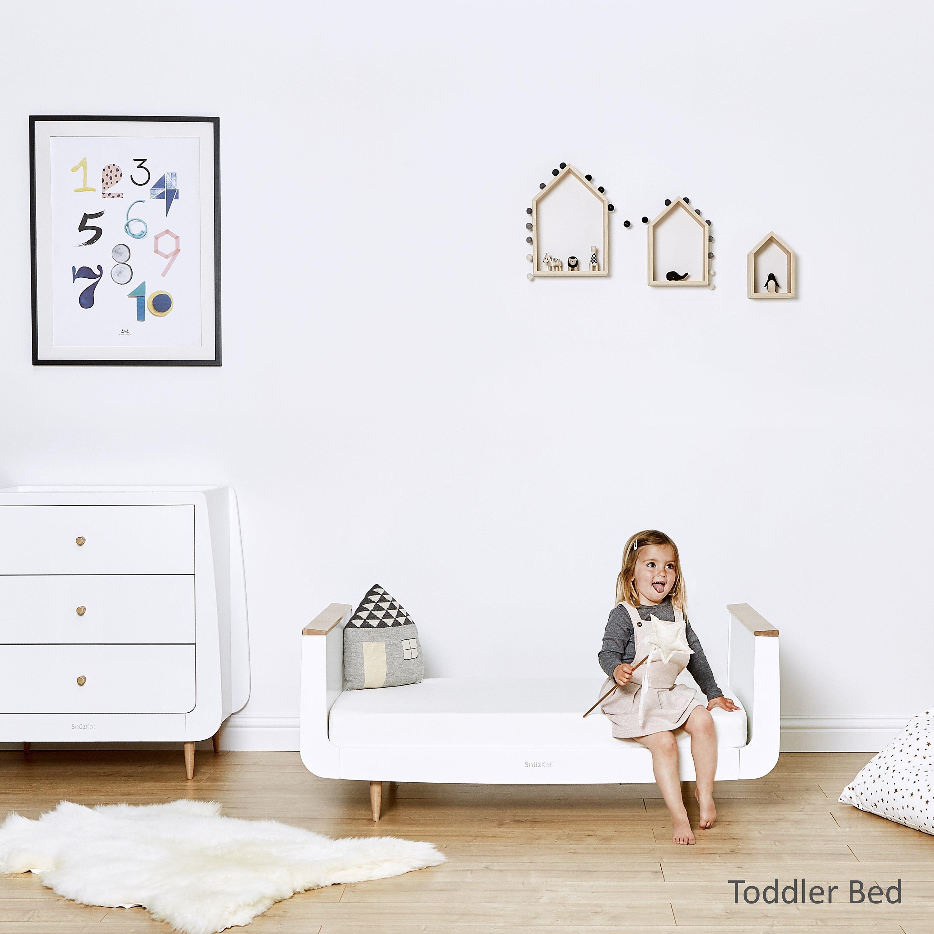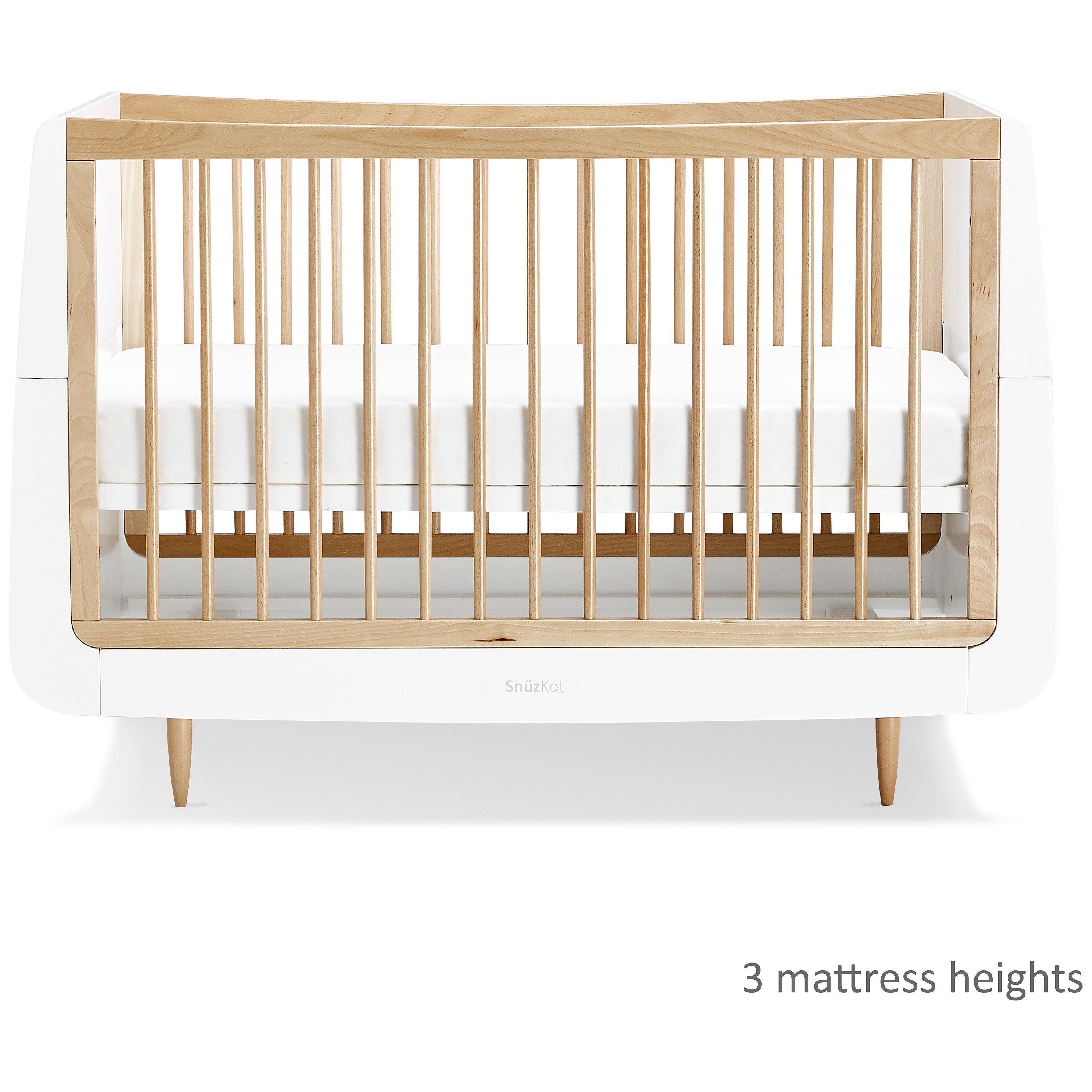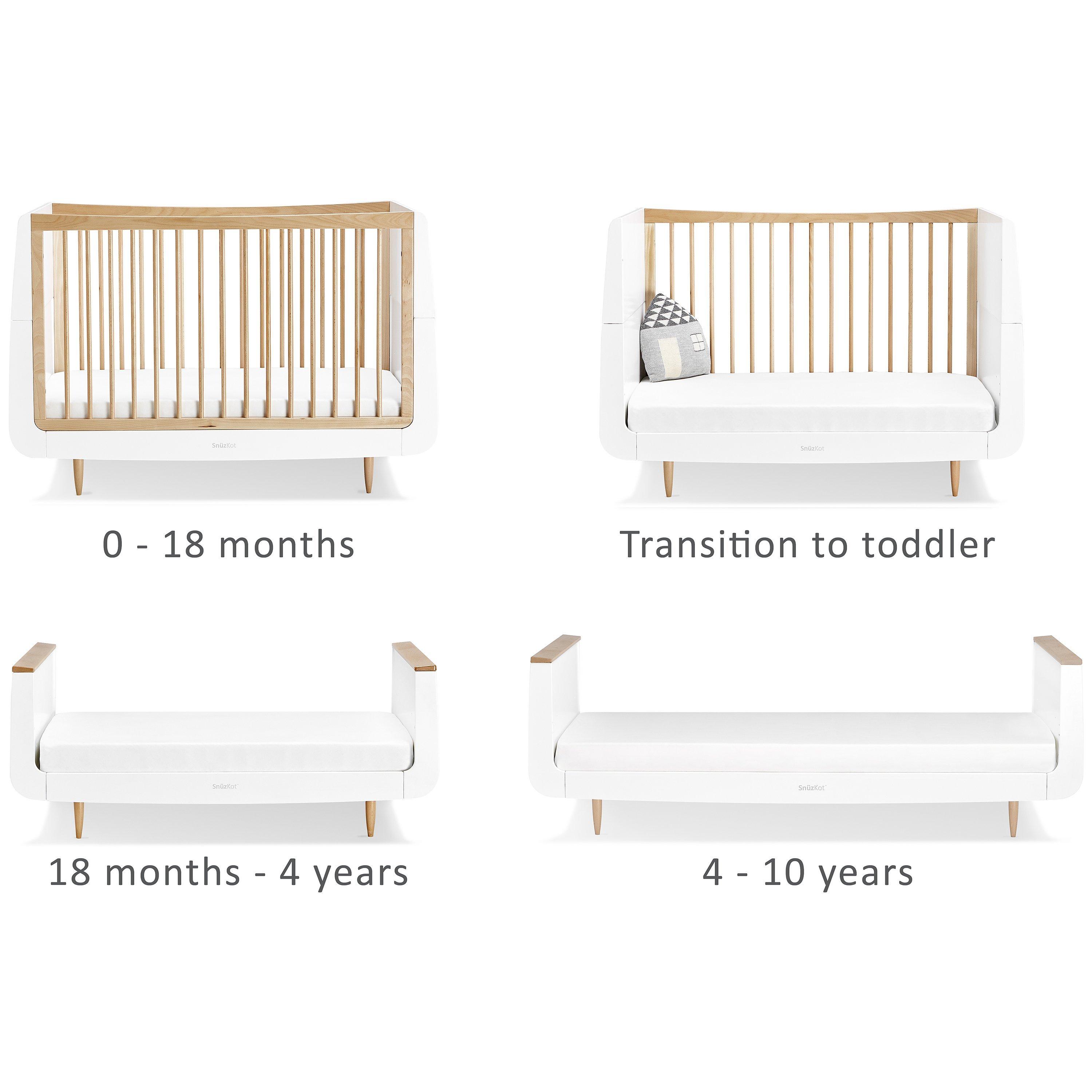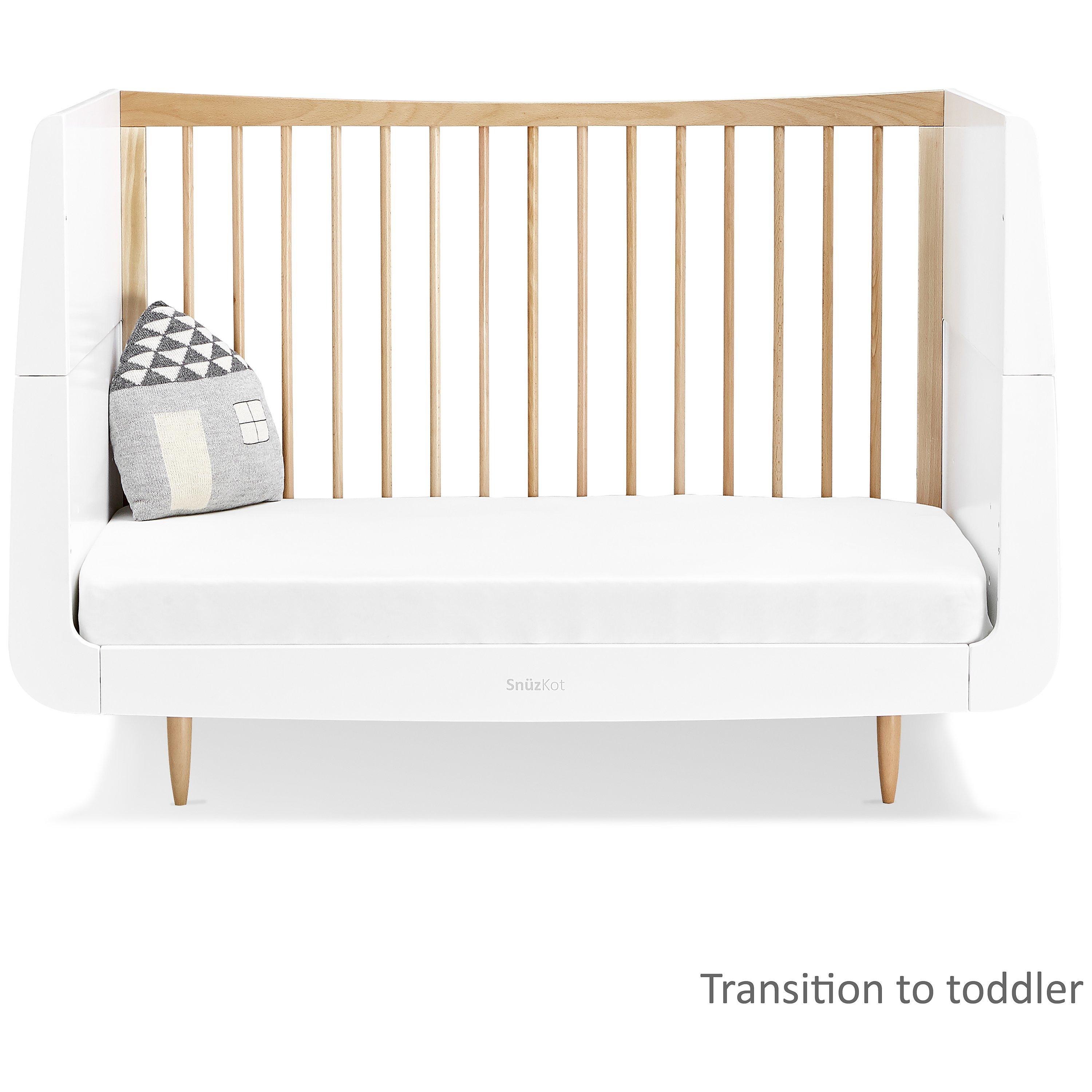 Create a nursery unique to you with the SnüzKot cotbed. It grows with your child from birth, providing a comfortable and cosy environment as a cot, then converting to a stylish toddler bed for use up to four years old.