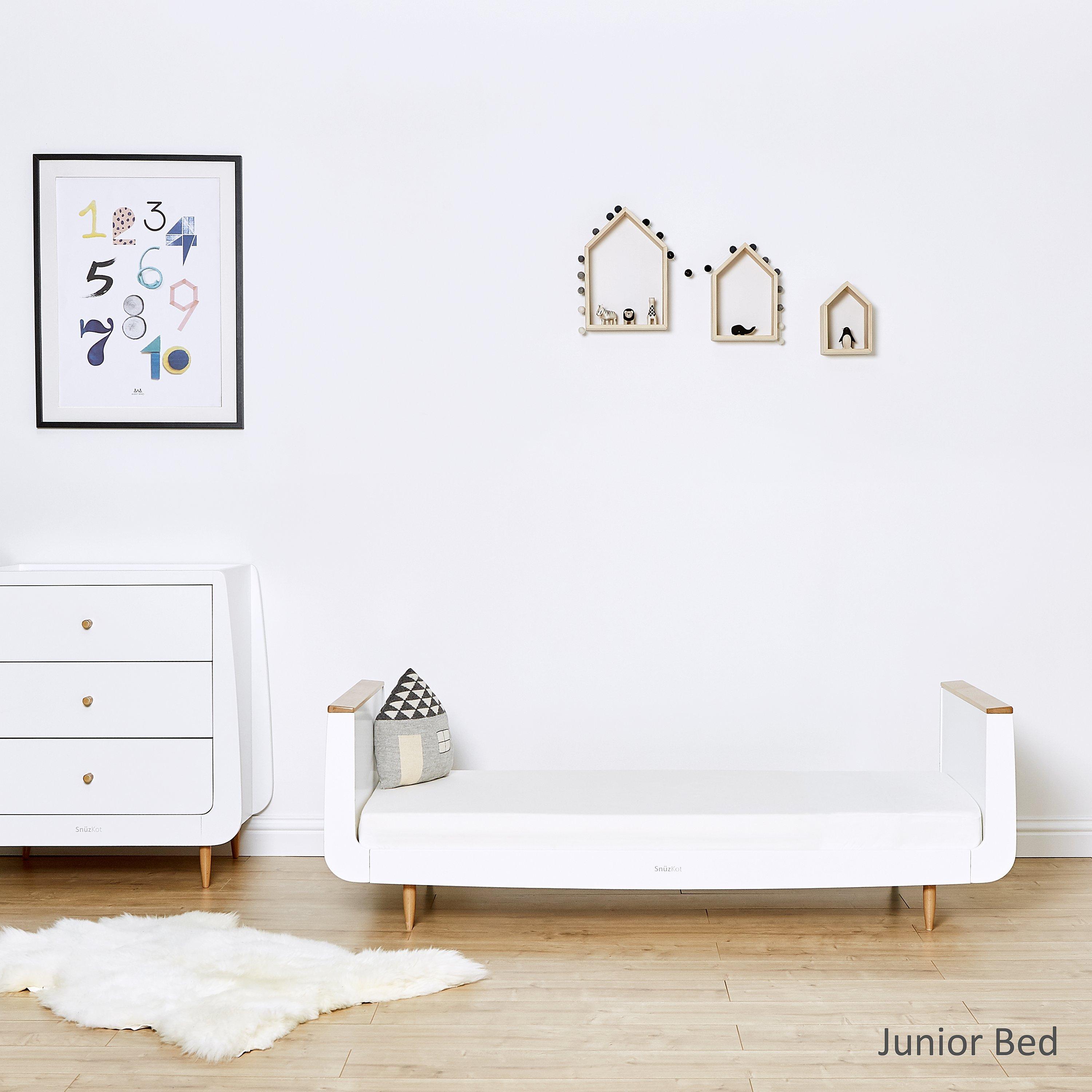 When extended to a Junior bed, your child can keep the bed they love for up to ten years, lasting longer than a standard cot bed. To do this, you'll need to purchase the extension kit and the extension mattress separately. Why not mix and match with the changing units, dressers and bedding in the Snuz range to create your bespoke nursery style?