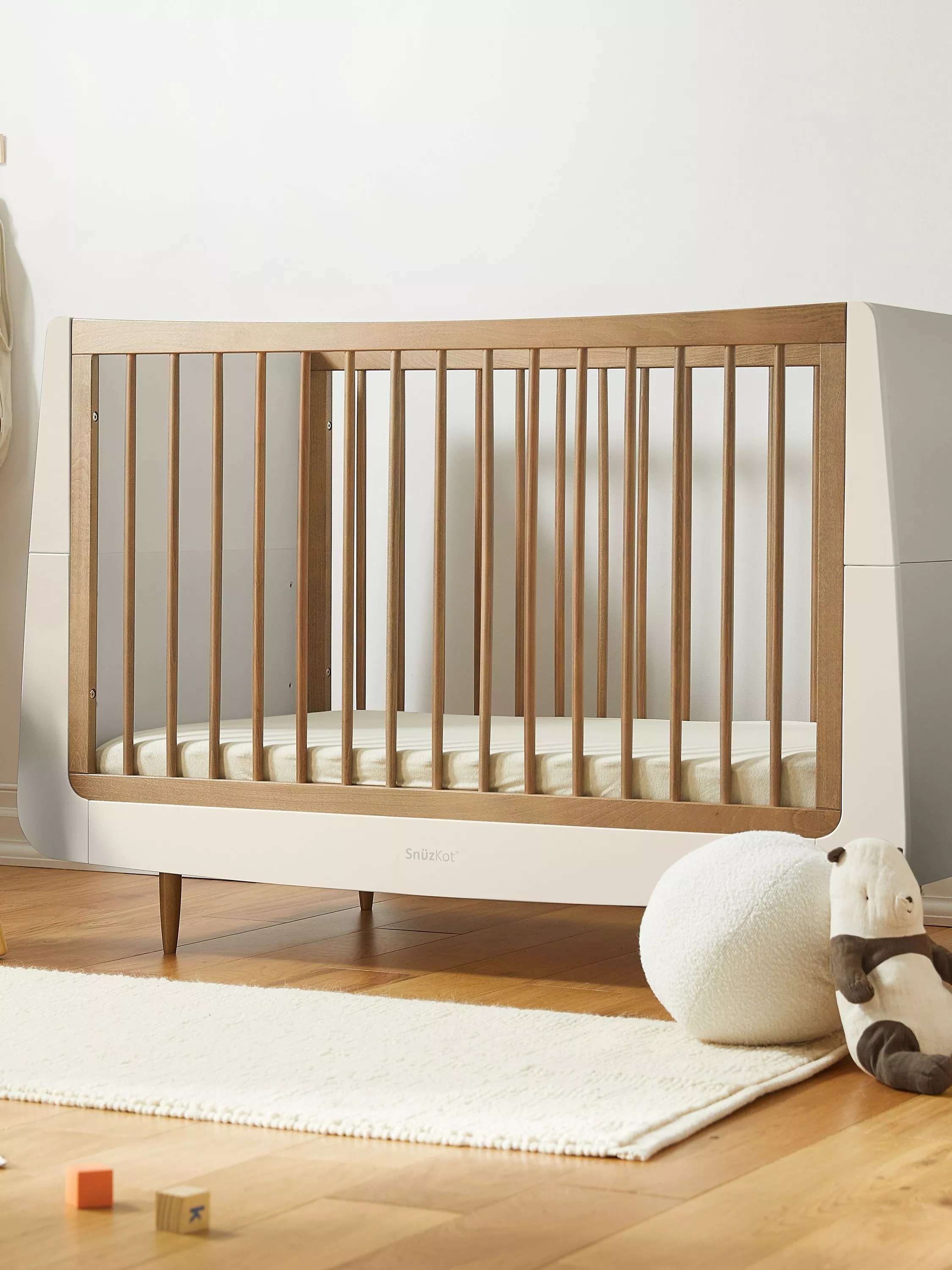 Create a nursery unique to you with the SnüzKot cotbed. It grows with your child from birth, providing a comfortable and cosy environment as a cot, then converting to a stylish toddler bed for use up to four years old.