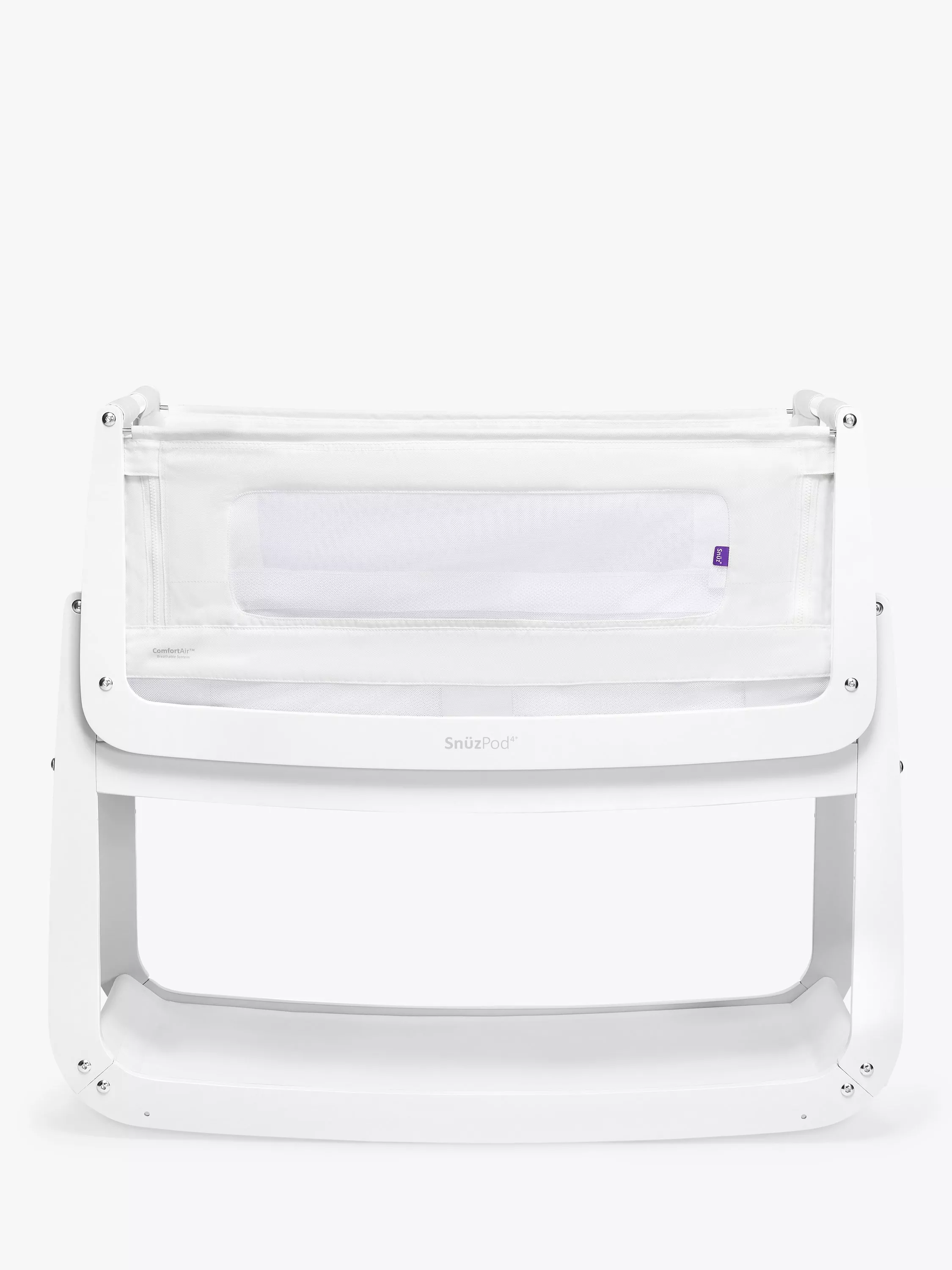 The original bedside crib. Sleep well, feed easily and be closer to your baby with SnuzPod⁴ the UK's best-selling bedside crib. Super breathable thanks to its innovative ComfortAir system, with unique air-flow vents, its machine washable mesh liner, and improved base ventilation, helping to regulate your baby's temperature all leads to a good night’s sleep for baby and for you too. SnuzPod⁴ also boasts a lightweight removable bassinet and breathable mattress with a 3D mesh cover for all-round better support.