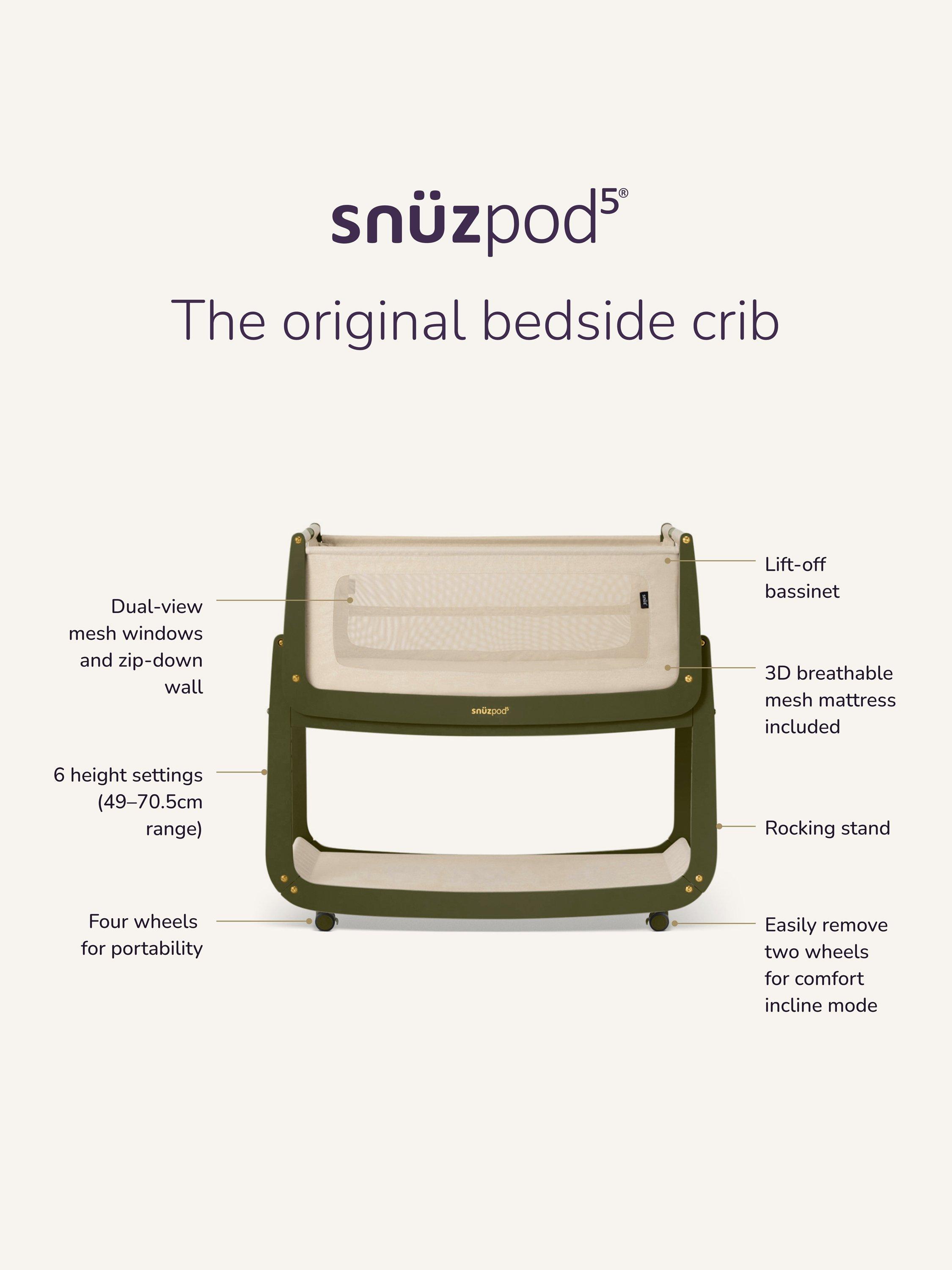 SnüzSnüzPod 5 Bedside Crib, Olive